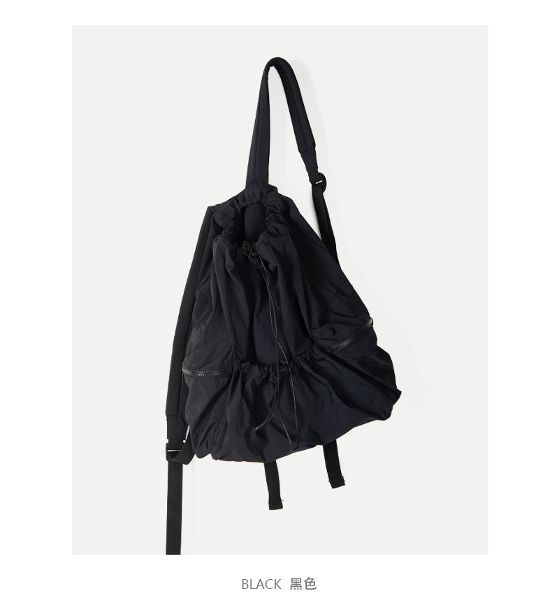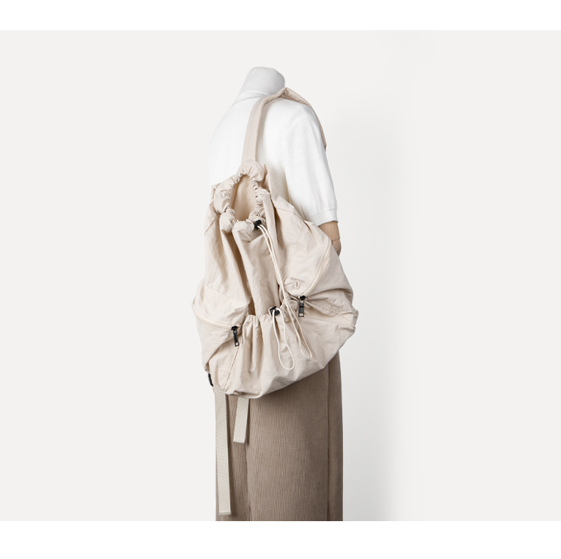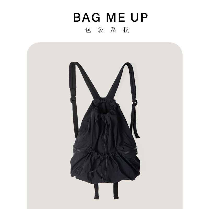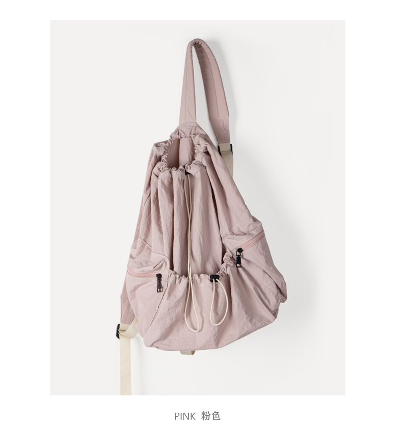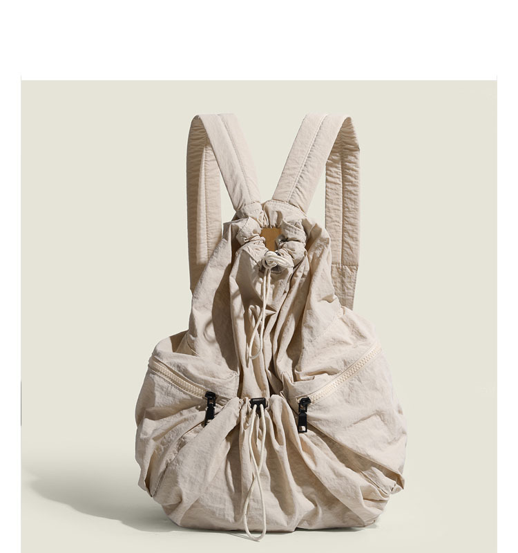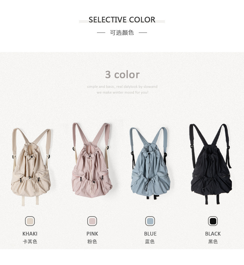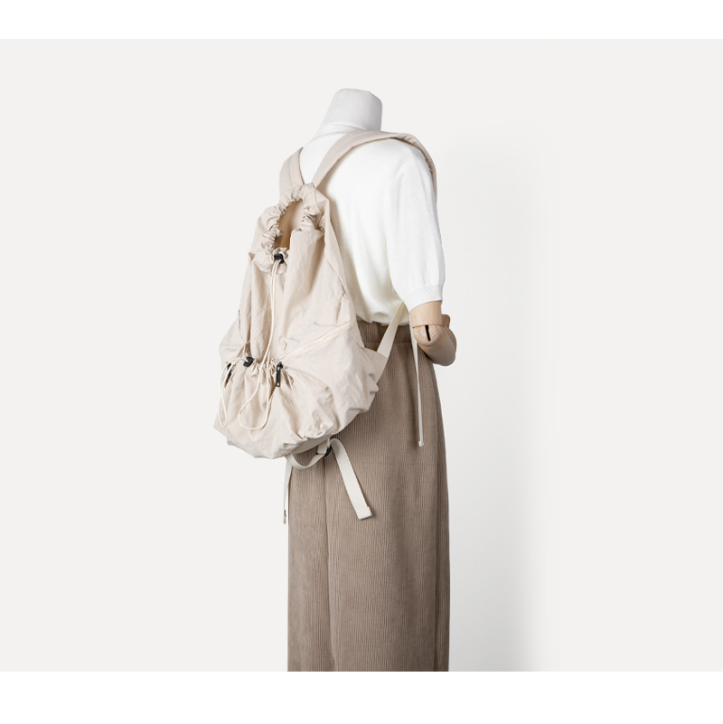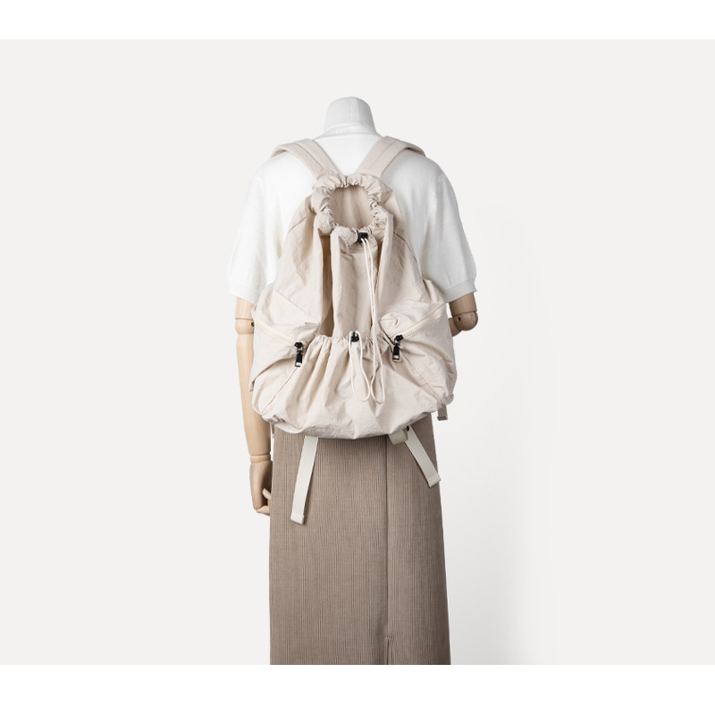 일본과 한국 스타일 드로스트링 리어 숄더백 하라주쿠 스타일 대용량 학생 책가방 캐주얼 모든 매치 플리츠 나일론 캔버스 백팩