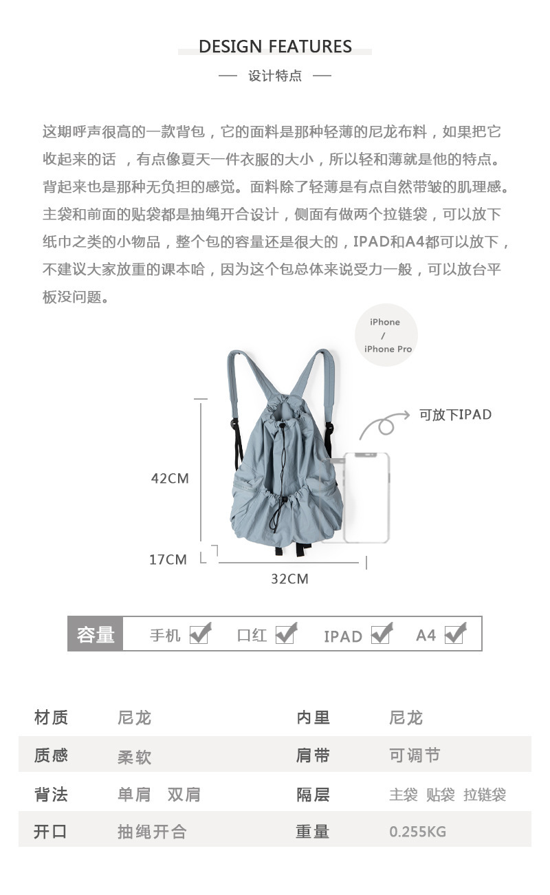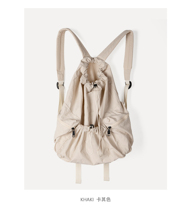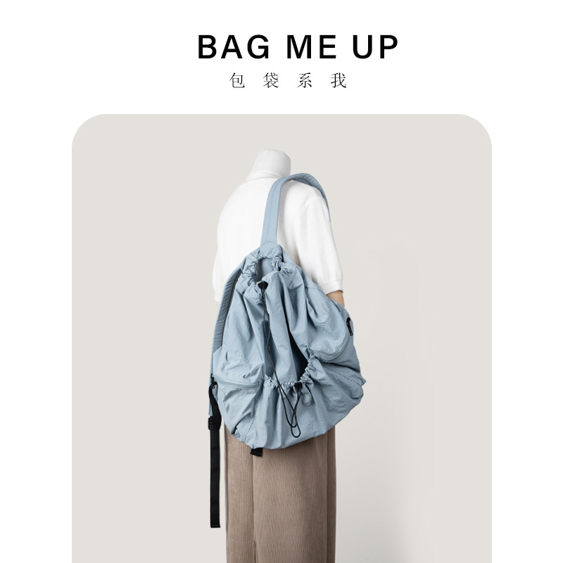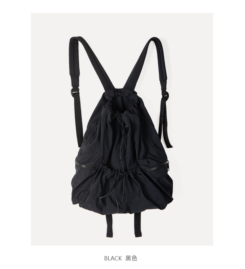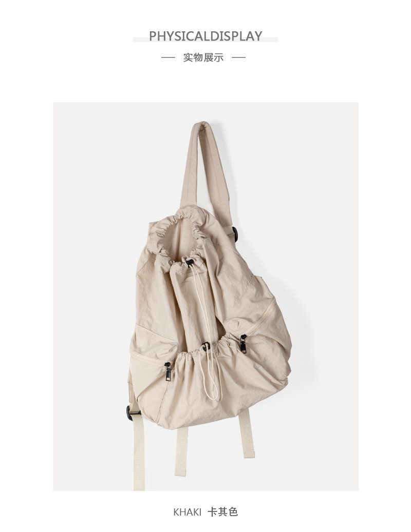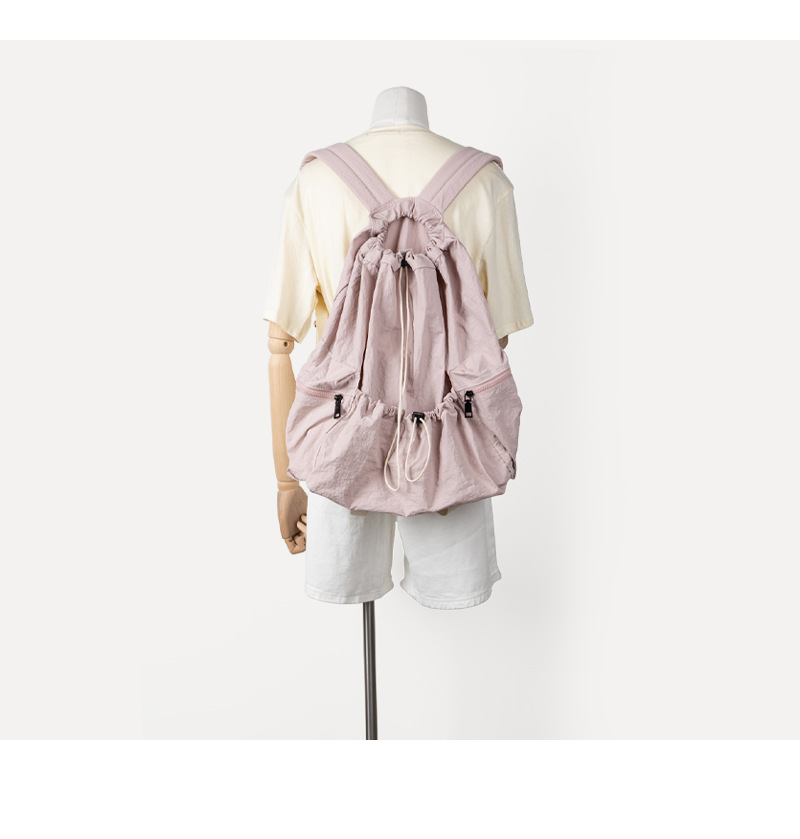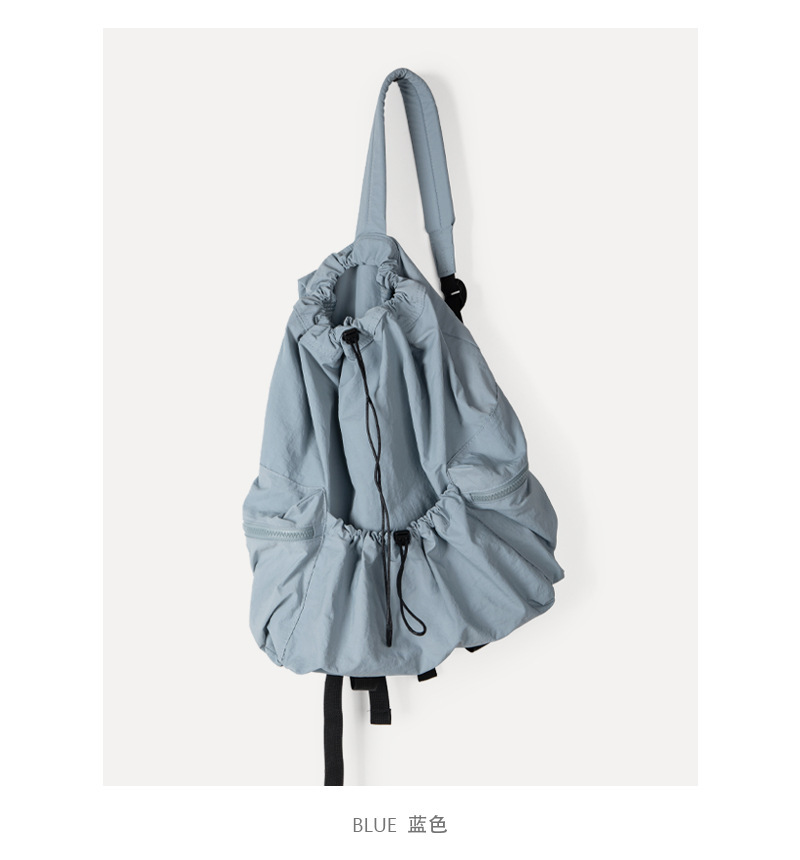 일본과 한국 스타일 드로스트링 리어 숄더백 하라주쿠 스타일 대용량 학생 책가방 캐주얼 모든 매치 플리츠 나일론 캔버스 백팩