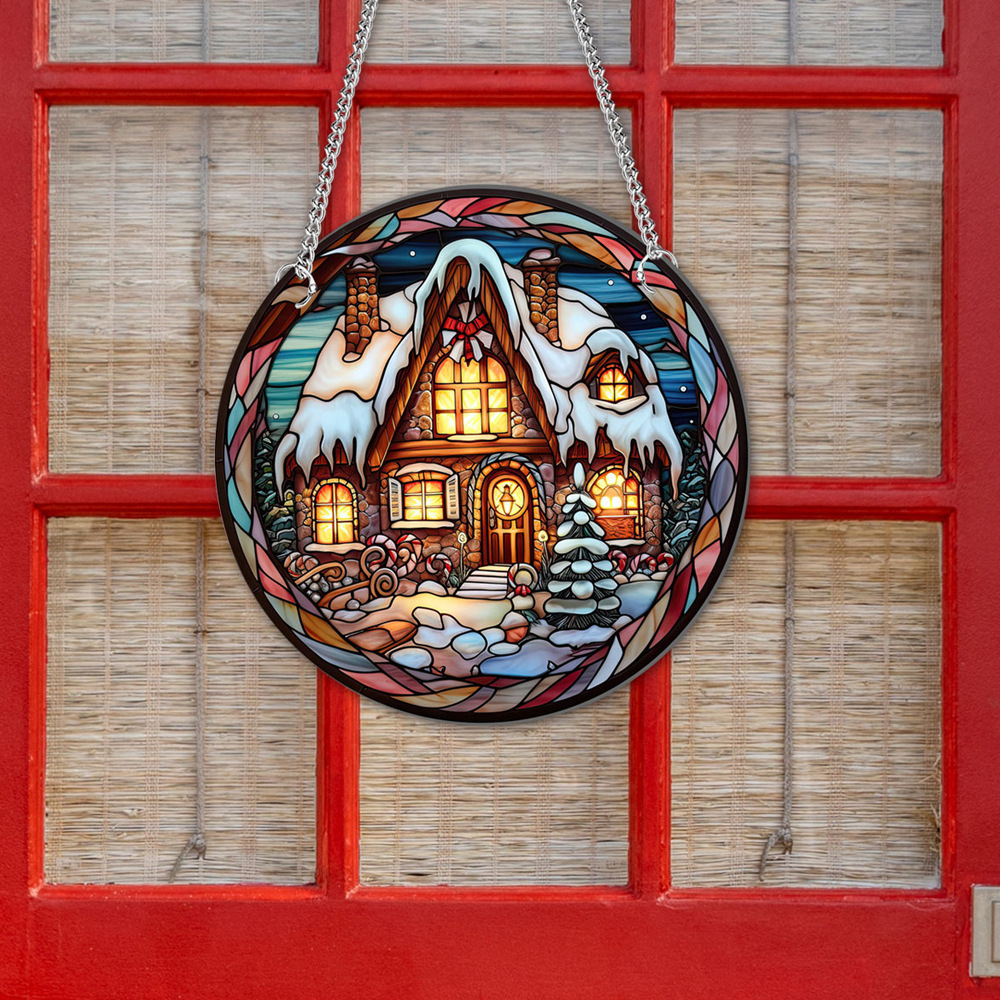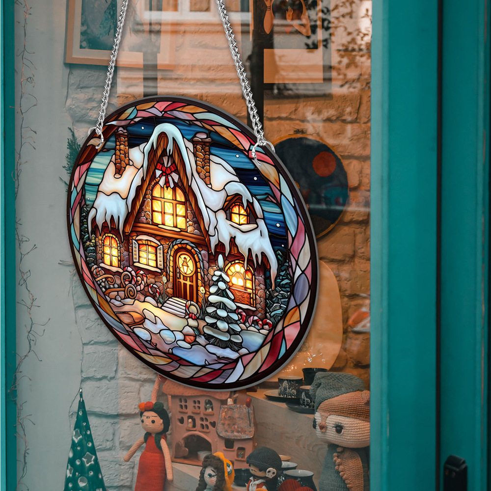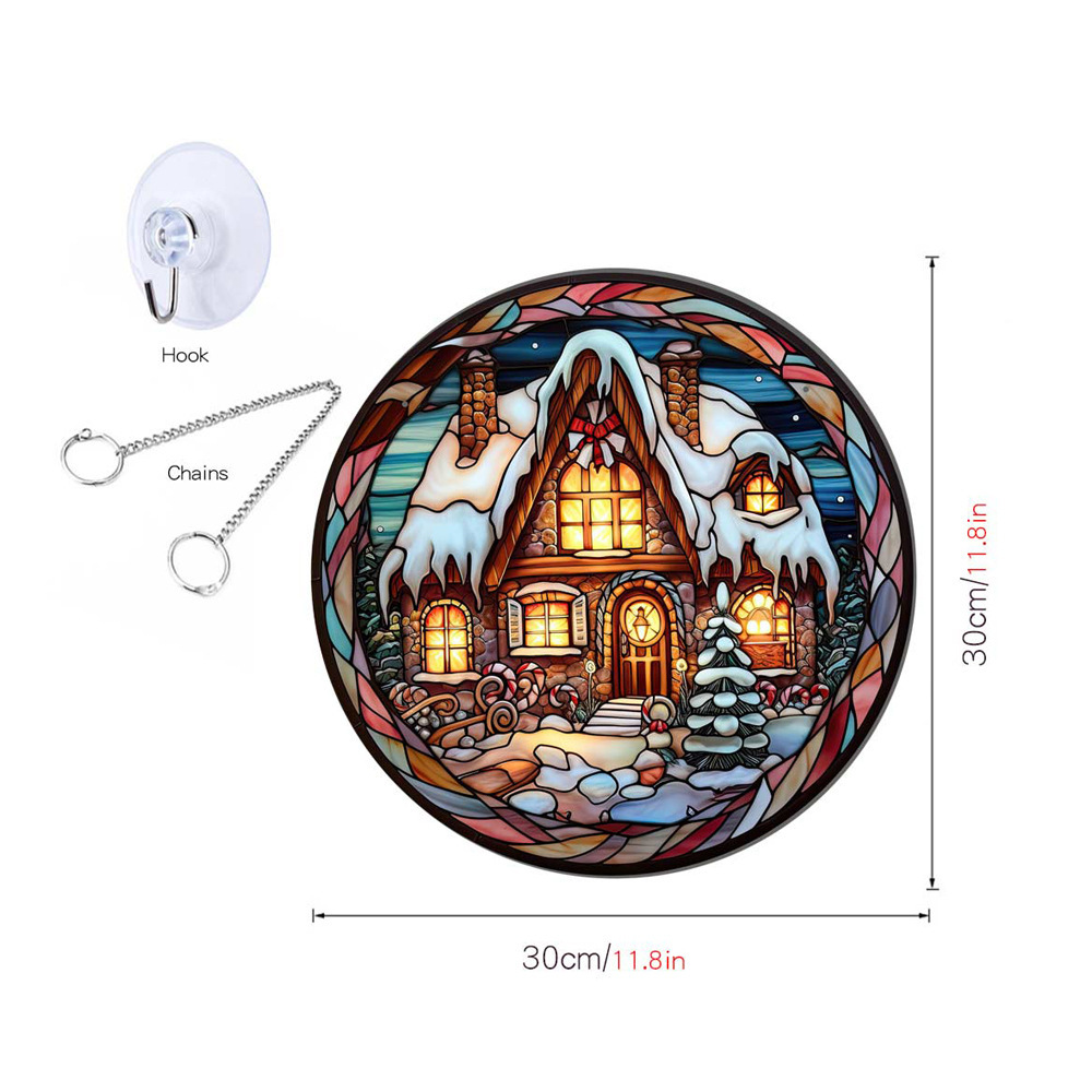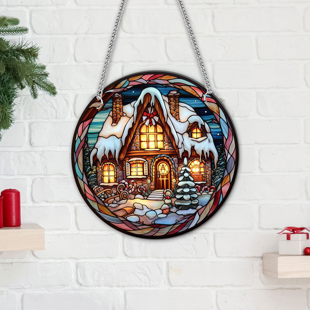 TYU153 크로스 보더 크리스마스 하우스 아크릴 펜던트 창 베란다 가정 장식 양면 패턴 철 체인 태그스토어 가기