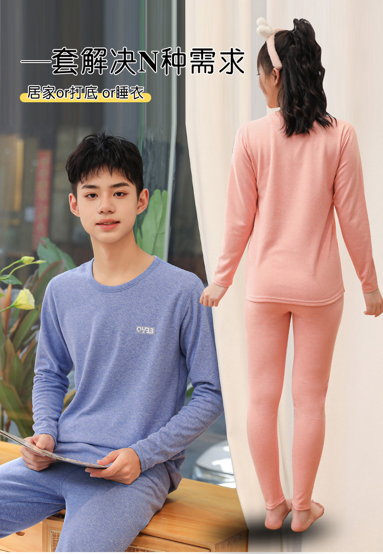 어린이 가을 옷 긴 바지 중대형 어린이 양모 실크 소년 소녀 홀리 중학생 열 속옷 세트