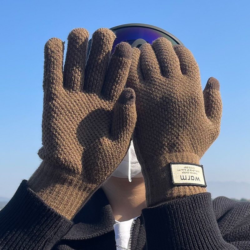 장갑 겨울 남자의 더블 레이어 기모 두꺼운 운전 감기 방지 따뜻한 니트 터치 스크린 장갑 여성용 도매스토어 가기