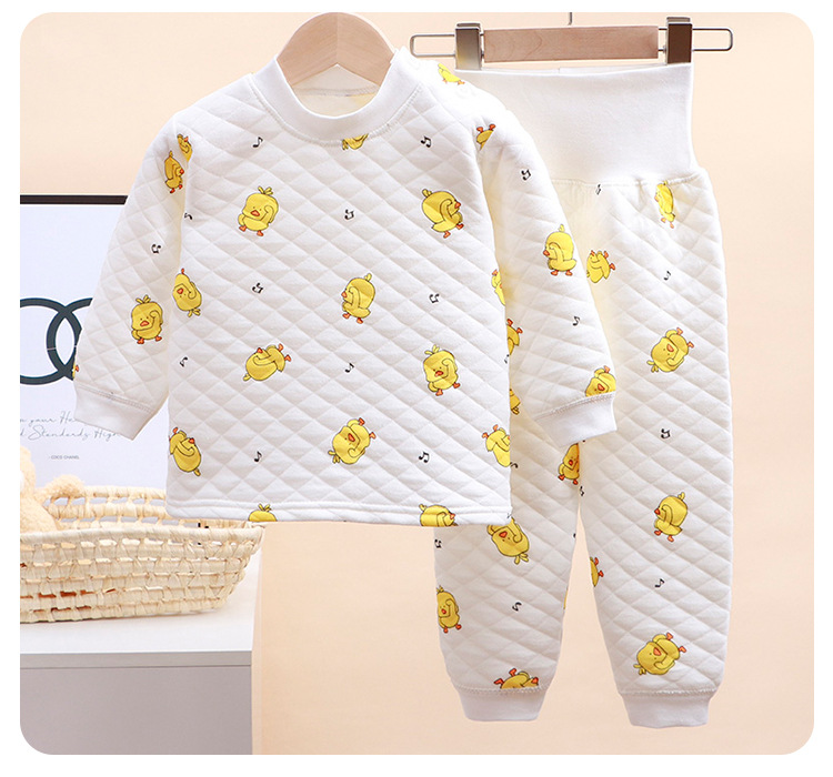 아기 따뜻한 두꺼운 높은 허리 배꼽 보호 바지 세트 아기 소년과 소녀 가을 옷 긴 바지 조정 홈 착용 재고스토어 가기