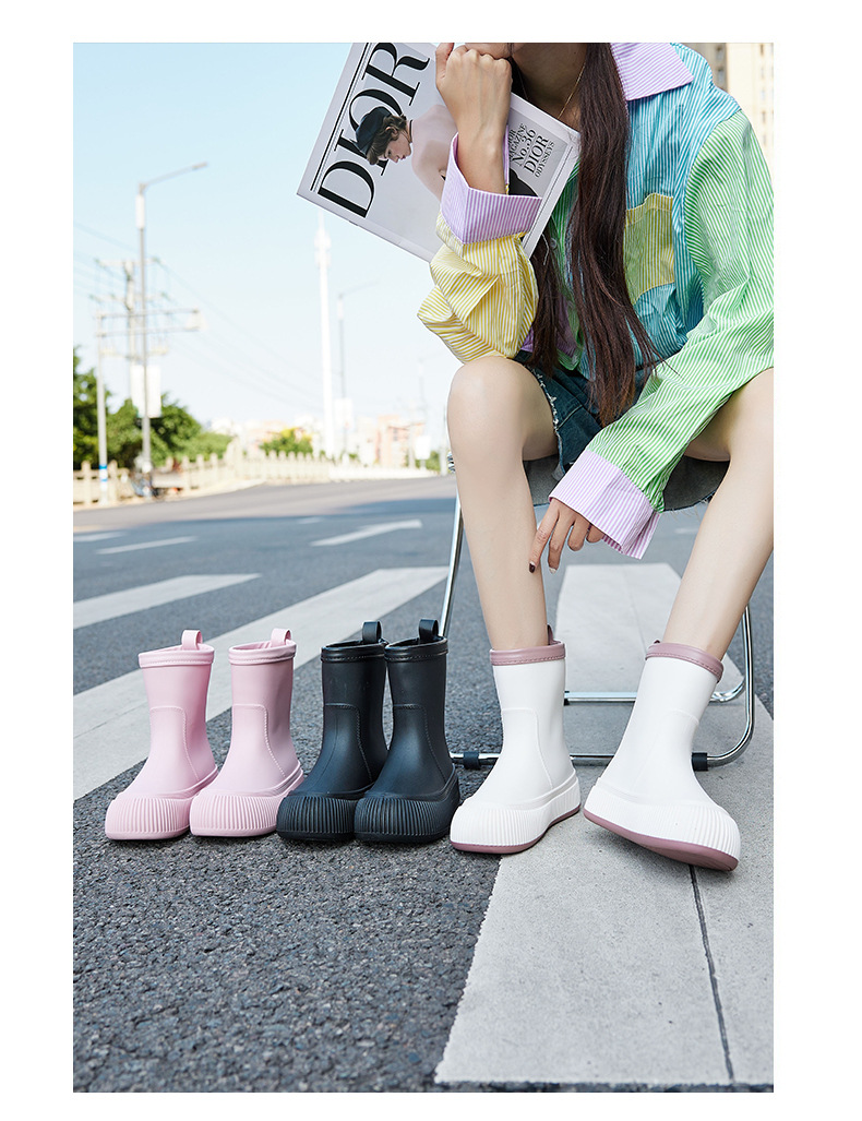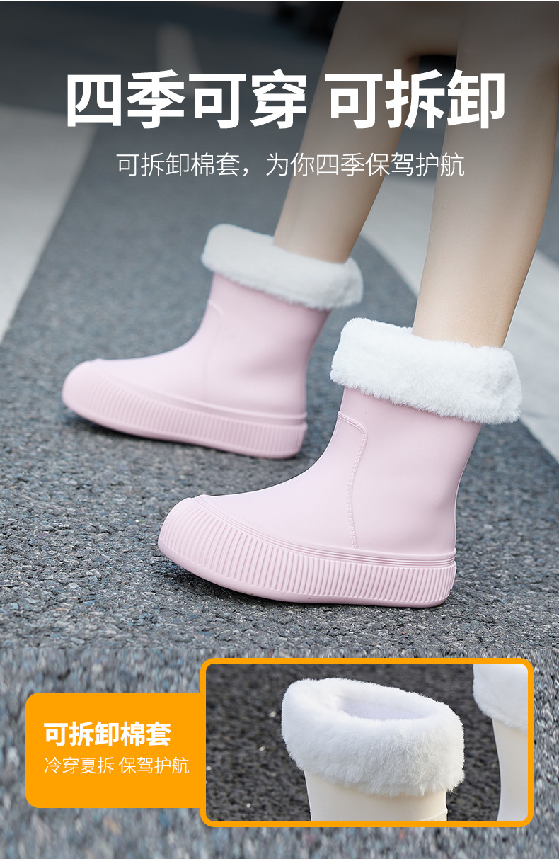 유행 겉옷을 입고 장화 새로운 오버 슈즈 방수 미끄럼 방지 물 신발 여성의 봄과 가을 기모 따뜻한 중간 두꺼운 낮은 비 신발스토어 가기