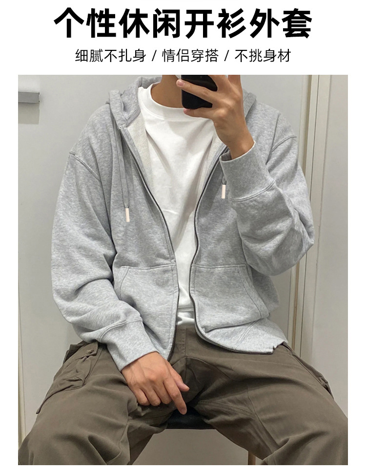 2025 새로운 순수 코튼 헤비 지퍼 셔츠 남성 게으른 스타일 초가을 스웨터 남성 후드 루즈 캐주얼 자켓스토어 가기