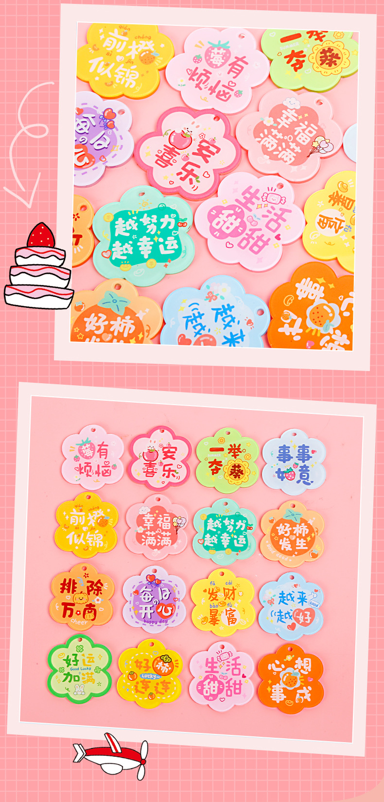DIY 액세서리 다각형 아크릴 양면 텍스트 카드 키 체인 성격 액세서리 창조적 인 귀여운 펜던트