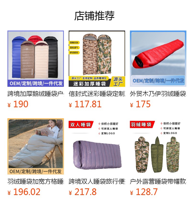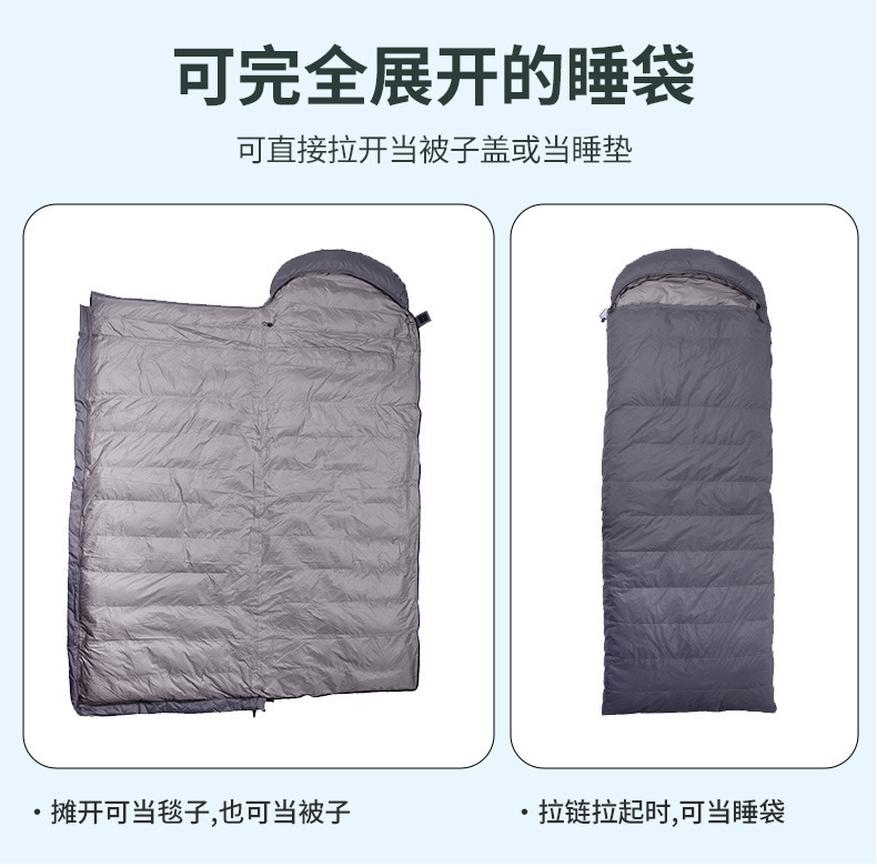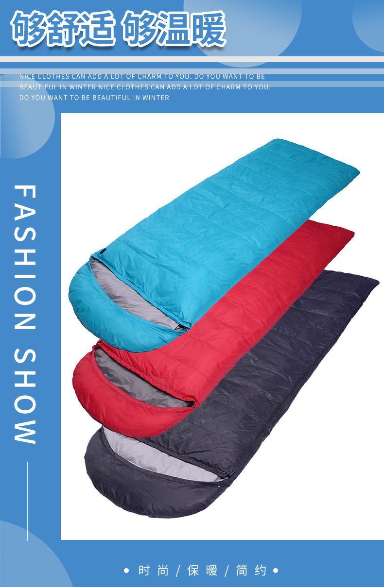 대외 무역용 오리털 침낭, 겨울철 및 사계절용, 두꺼운 봉투형 여행용 휴대용 야외 캠핑용 다운 침낭스토어 가기