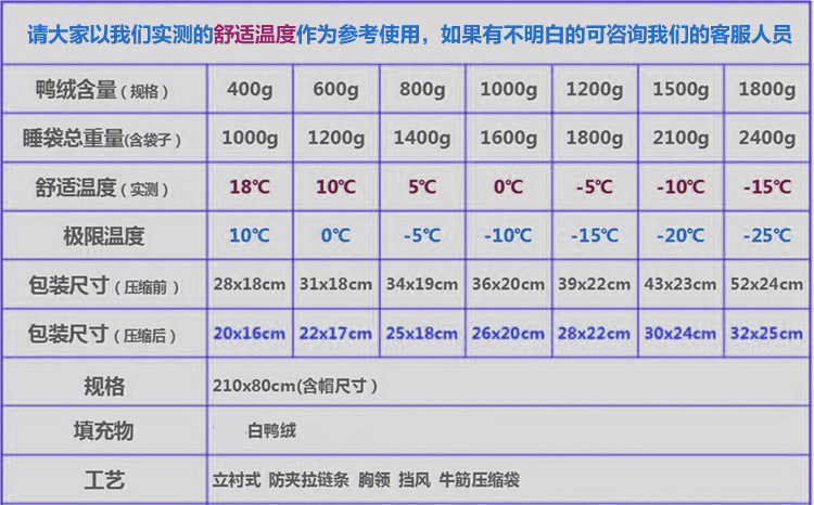 대외 무역용 오리털 침낭, 겨울철 및 사계절용, 두꺼운 봉투형 여행용 휴대용 야외 캠핑용 다운 침낭