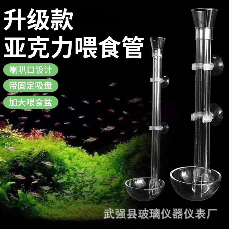 亚克力喂食管,防止喂食过程中鱼粮满缸飞,让小鱼小虾学会排队吃饭,大中小适合不同尺寸的鱼缸,不夹鱼,使用方便。