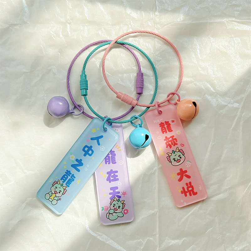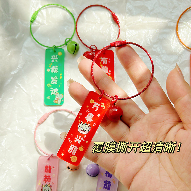 2024 드래곤 이어 다지 새로운 아크릴 플레이트 키 체인 펜던트 양면 텍스트 창조적 인 가방 교수형 선물