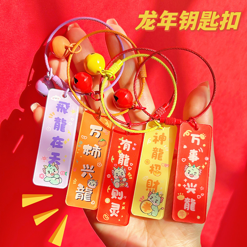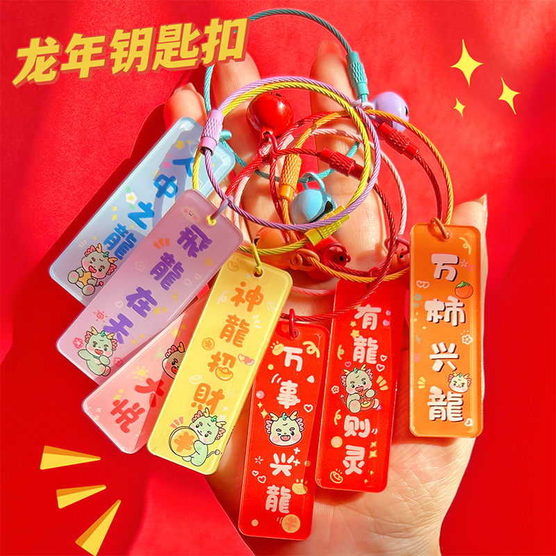 2024 드래곤 이어 다지 새로운 아크릴 플레이트 키 체인 펜던트 양면 텍스트 창조적 인 가방 교수형 선물스토어 가기