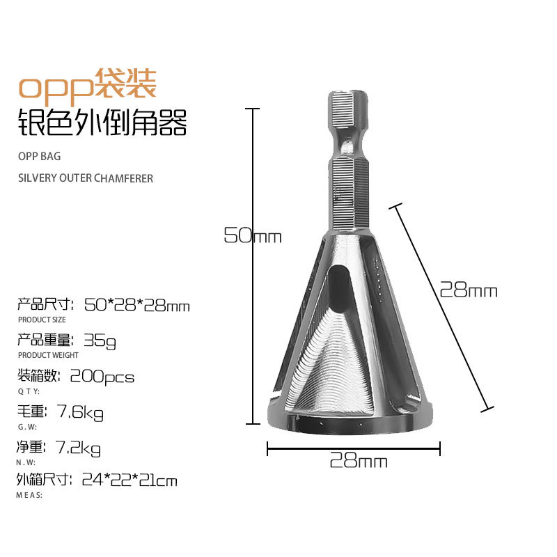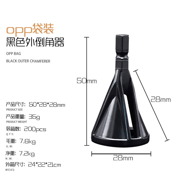 老款倒角器pp袋装:装箱数:200PC 外箱尺寸:24*22*21CM 重量:7.6KG