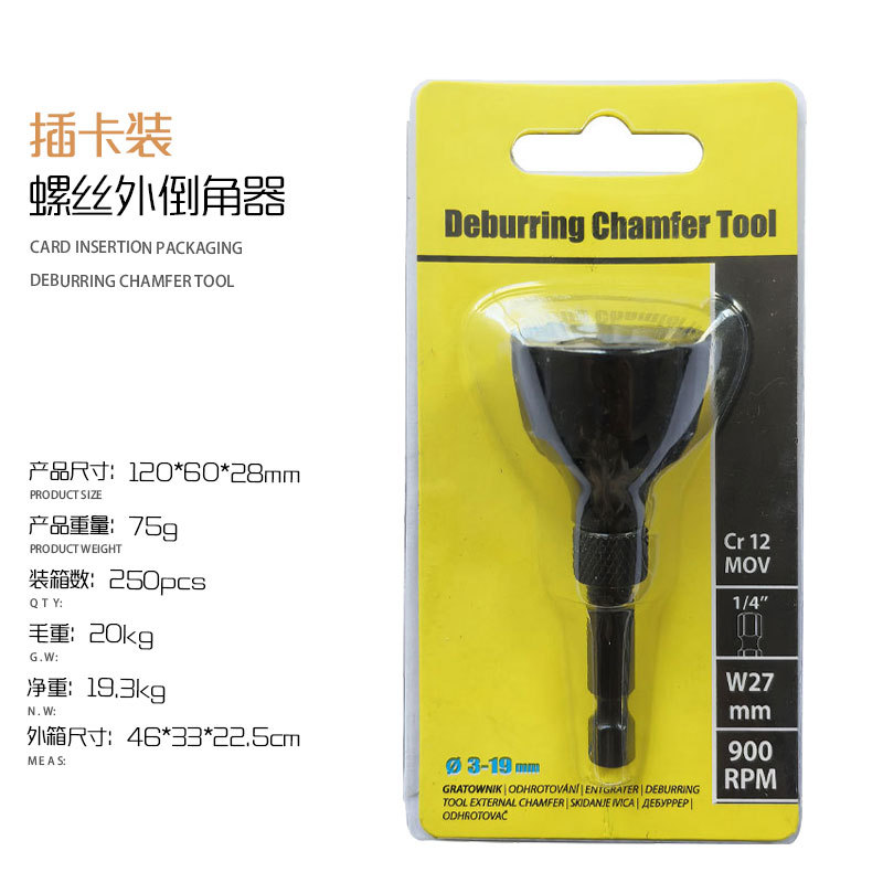 新款倒角器双泡装:装箱数:250PC 外箱尺寸:46*33*22.5CM 重量:20KG