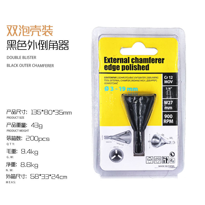 老款倒角器双泡壳装:装箱数:200PC 外箱尺寸:58*33*24CM 重量:9.4KG