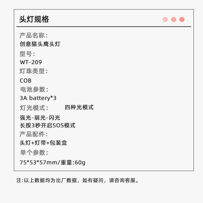 • WT-209 헤드 라이트 + 컬러 박스 (건전지)-배터리 없음