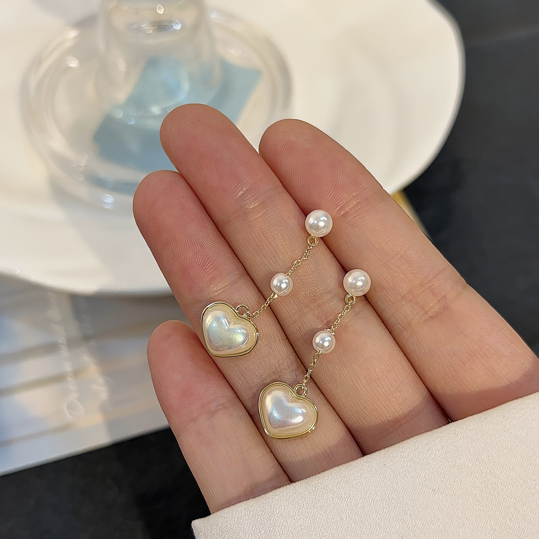 구리 합금 진주 사랑 술 귀걸이 2023 새로운 틈새 디자인 센스 귀걸이 높은 기질 모든 일치 귀스토어 가기