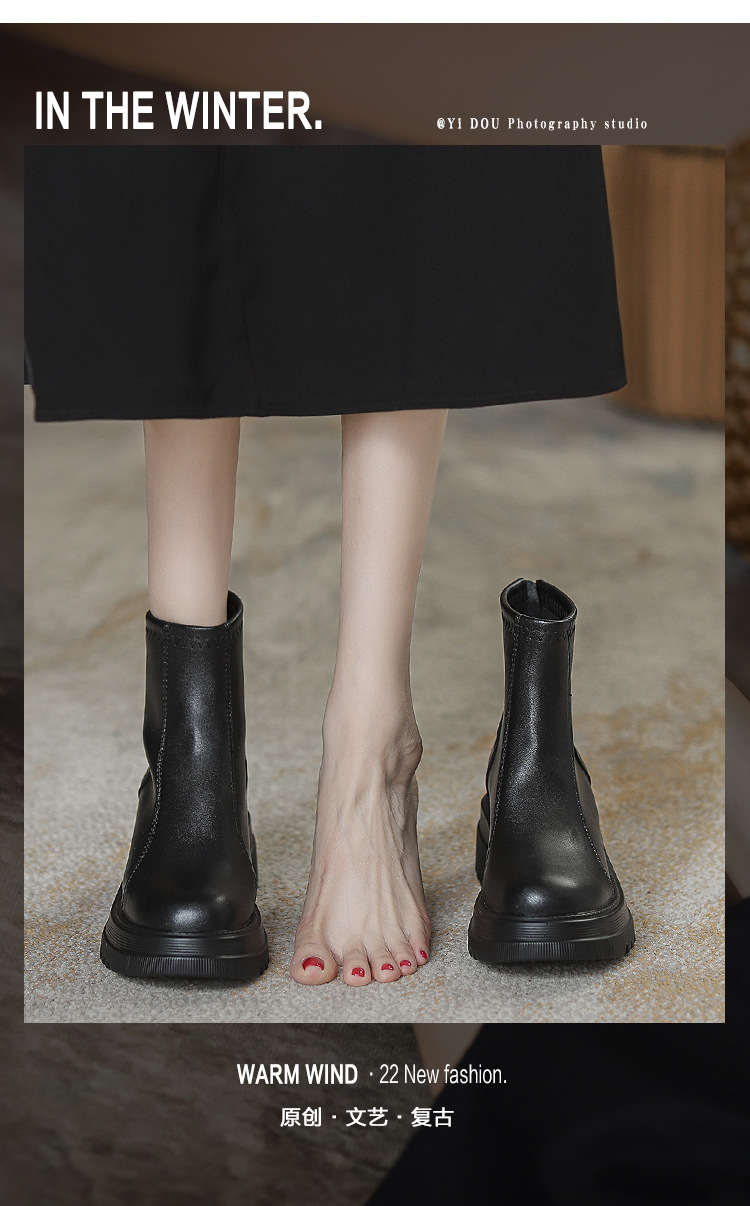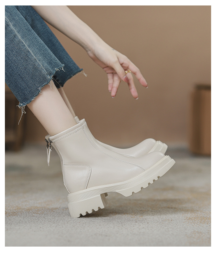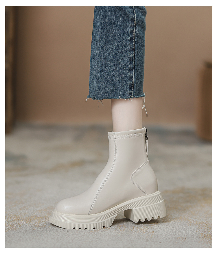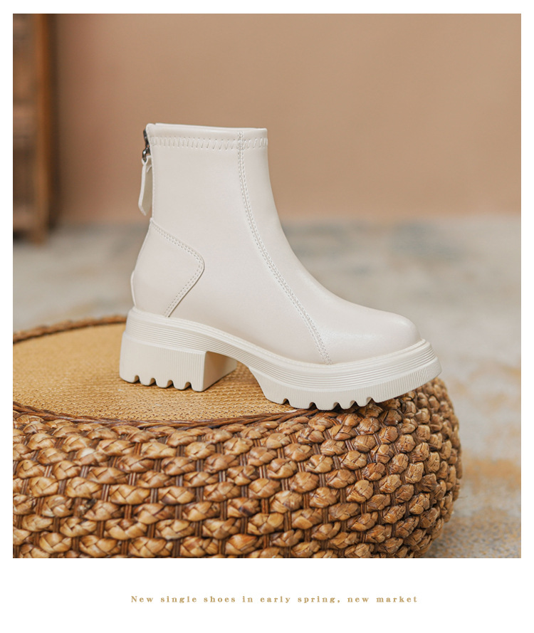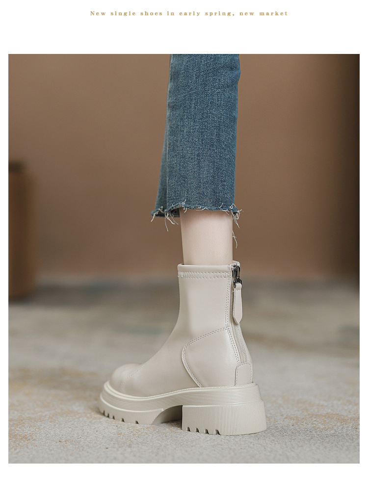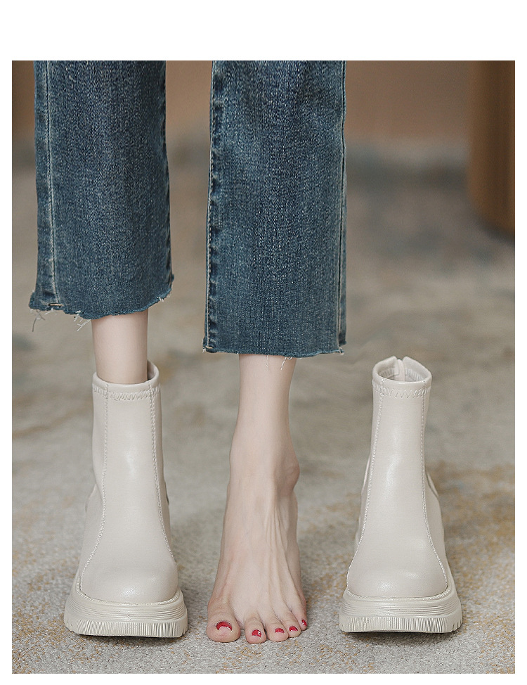 영국 스타일 마틴 부츠 여성 가을과 겨울 2023 새로운 작은 높이 얇은 부츠 두꺼운 바닥 폭발 흰색 짧은 부츠스토어 가기