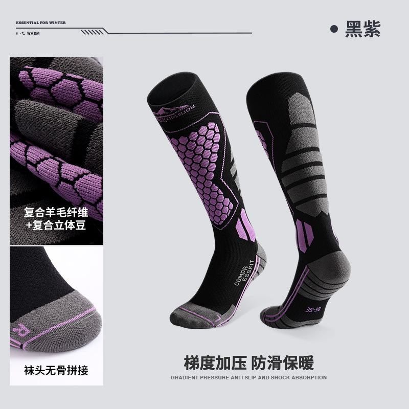 겨울용 울 롱 스키 양말 남녀공용 보온 속건 야외 스포츠용 플리스 안감 두꺼운 하이탑 압박 종아리 양말스토어 가기