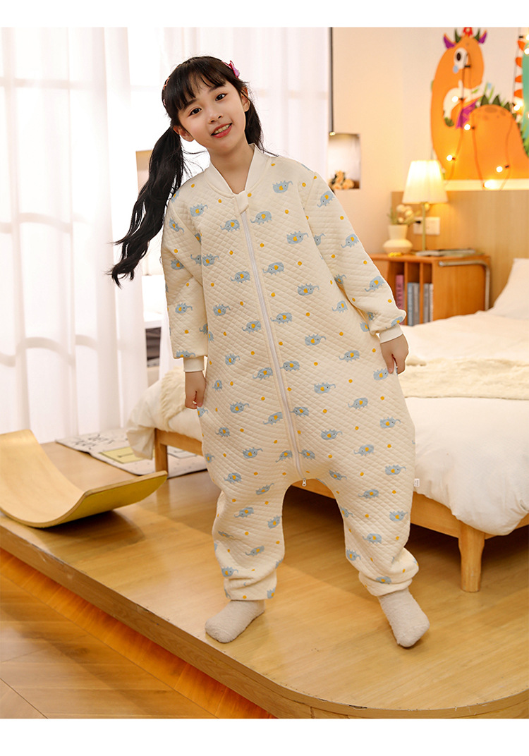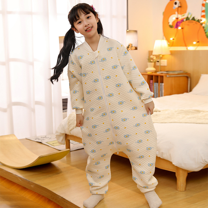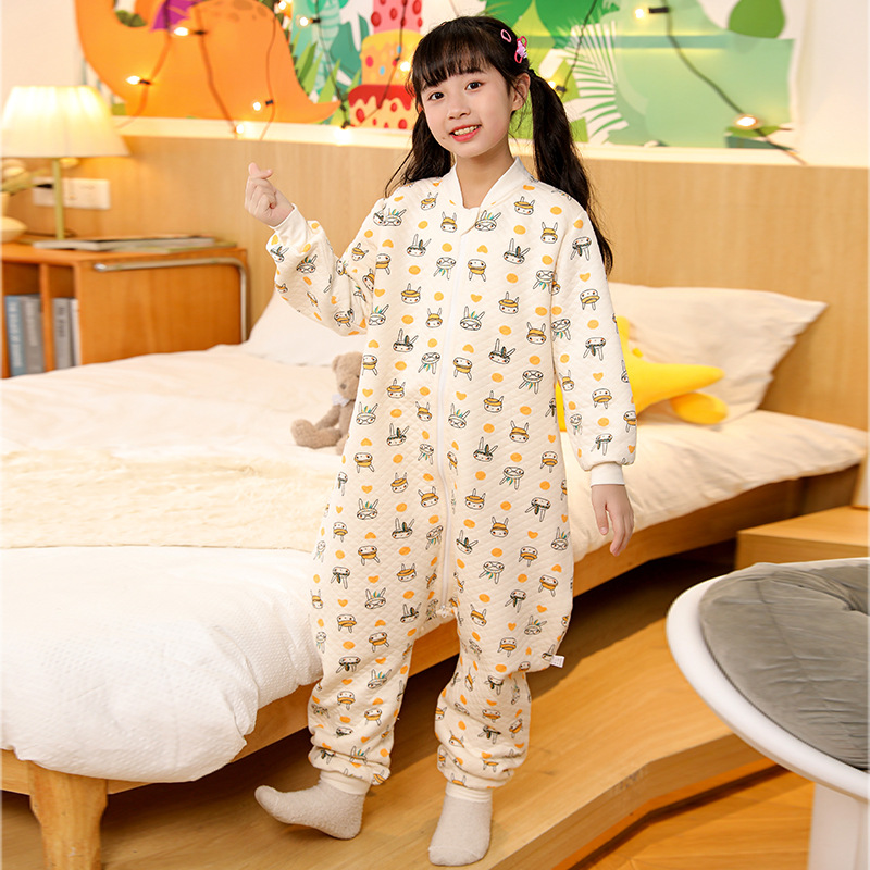 중대형 어린이 분할 다리 침낭 아기 가을, 겨울 두꺼운 따뜻한 학생 어린이 잠옷 아기 안티 킥 이불