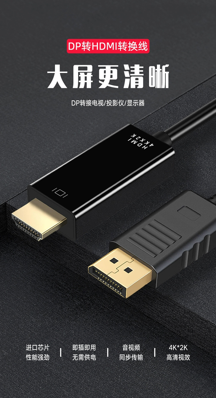 dp-hdmi 변환 케이블 고화질 4K30Hz 컴퓨터 모니터 케이블 1.8m 금도금 엘리베이터 고화질 케이블