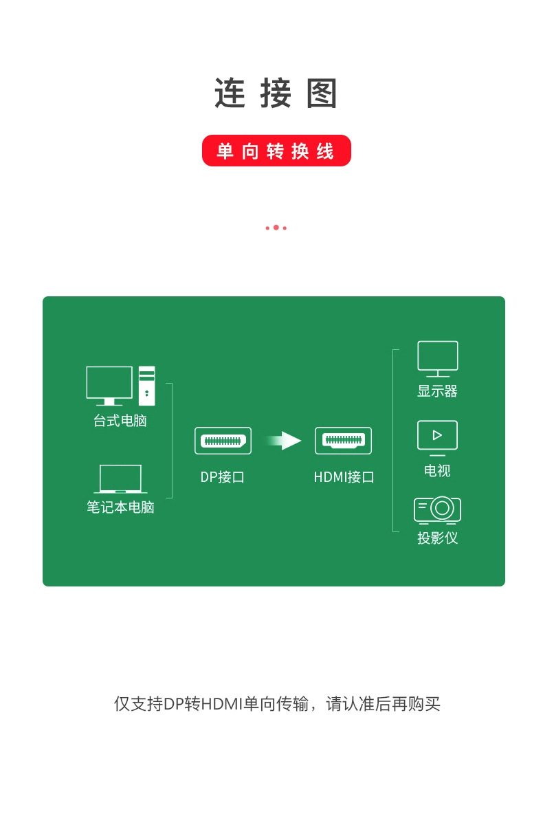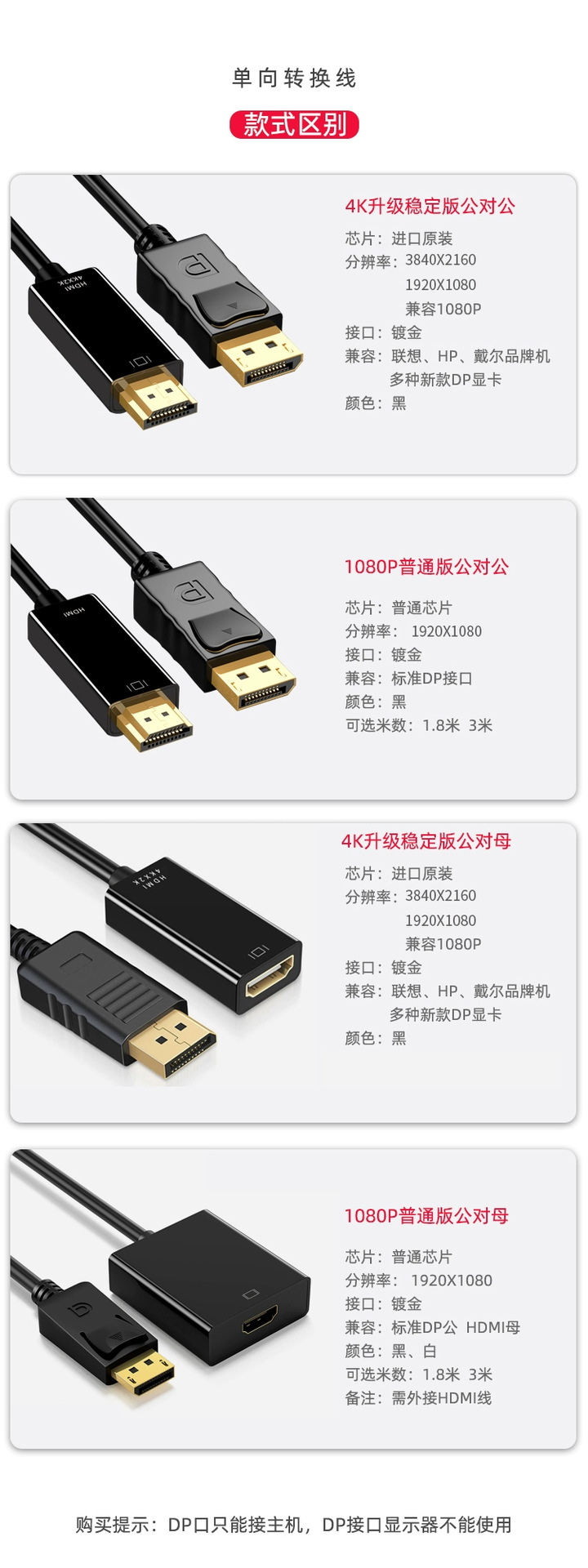 • DP-HDMI 케이블 1080P