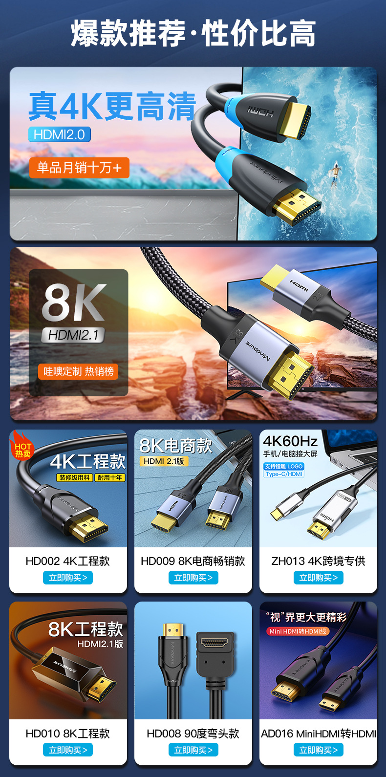 • DP-HDMI 케이블 4K