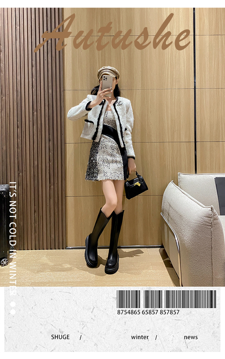새로운 가을과 겨울 짧은 내부 높이 부츠 영국 스타일 부츠 라운드 발가락 두꺼운 발 뒤꿈치 두꺼운 바닥 스트레치 여성용 얇은 부츠