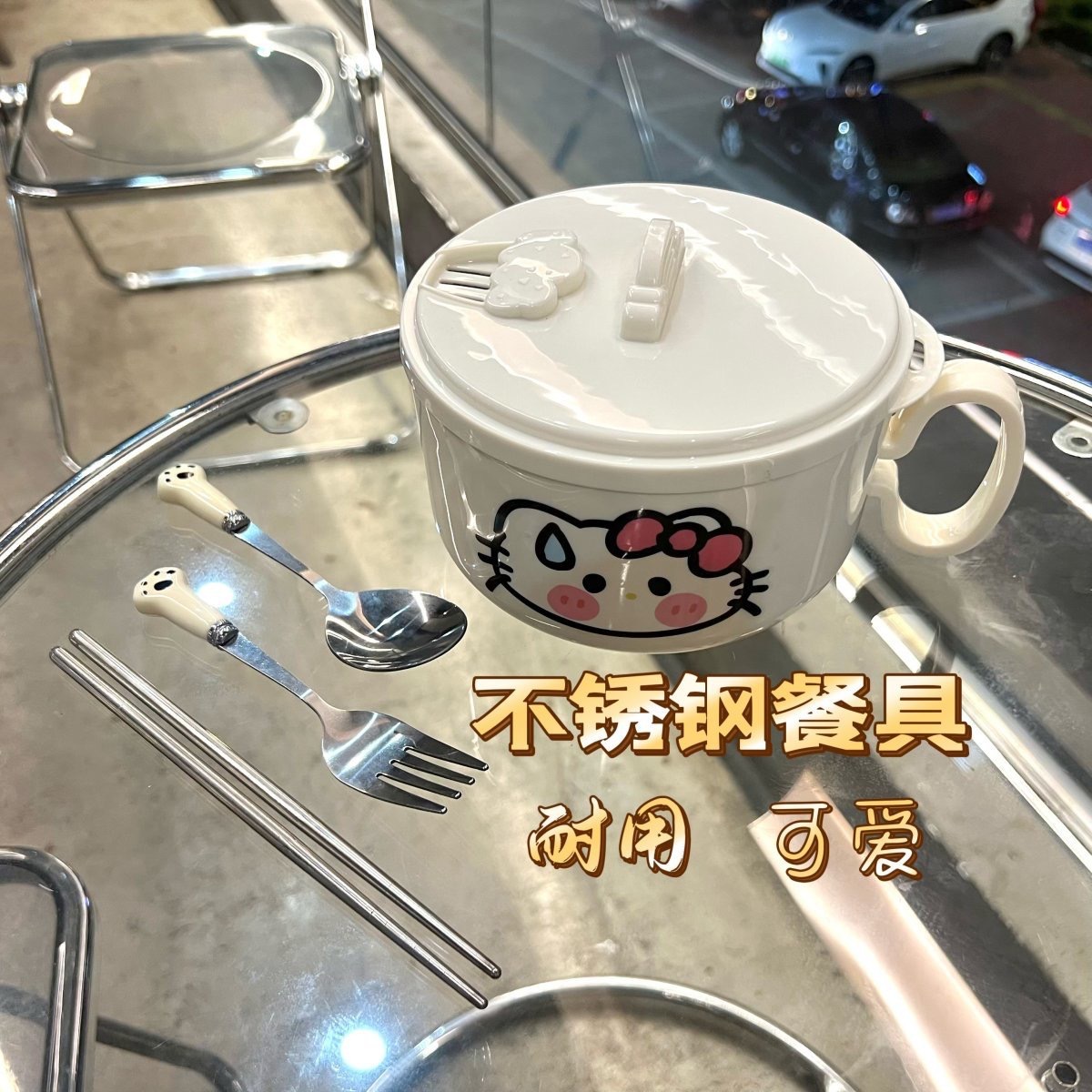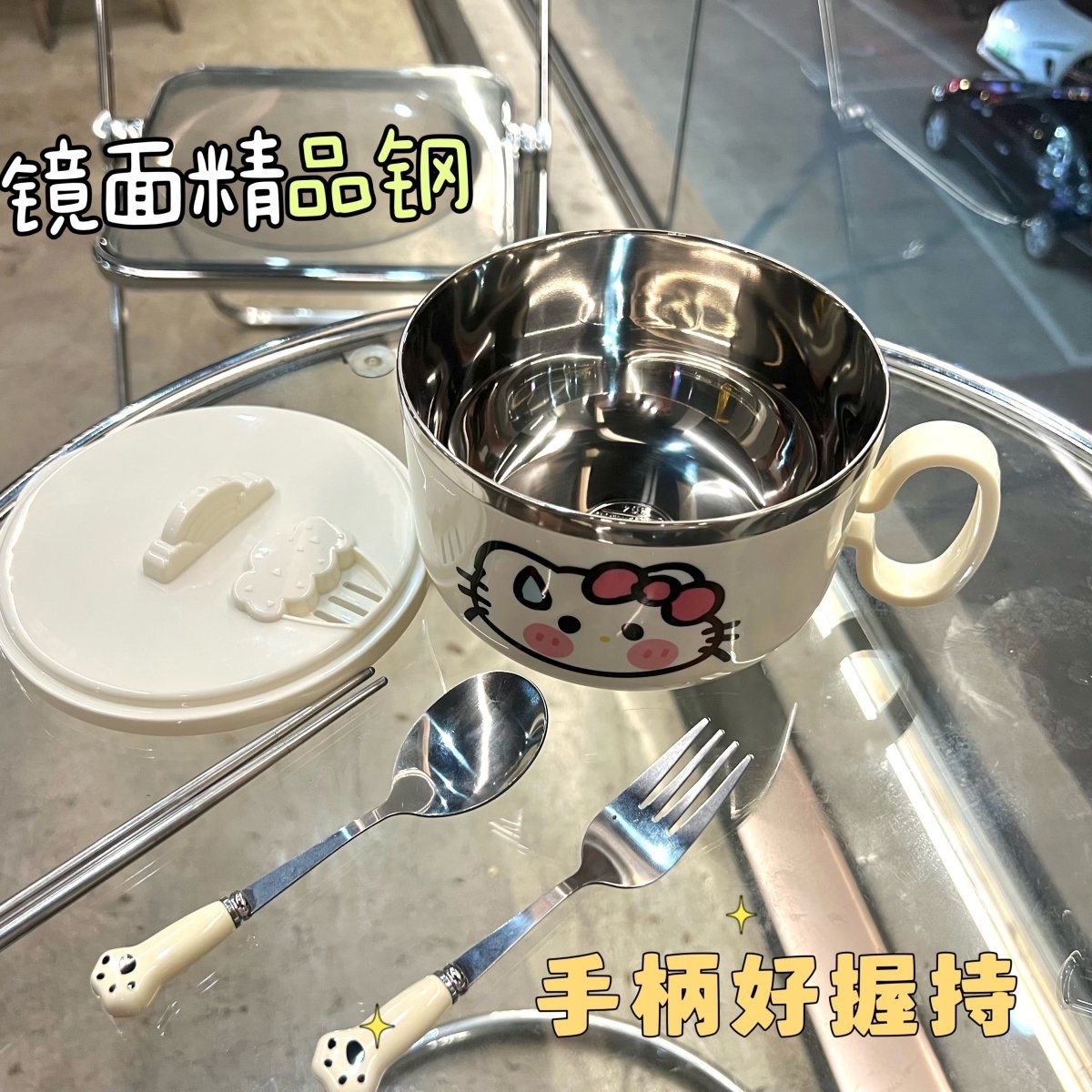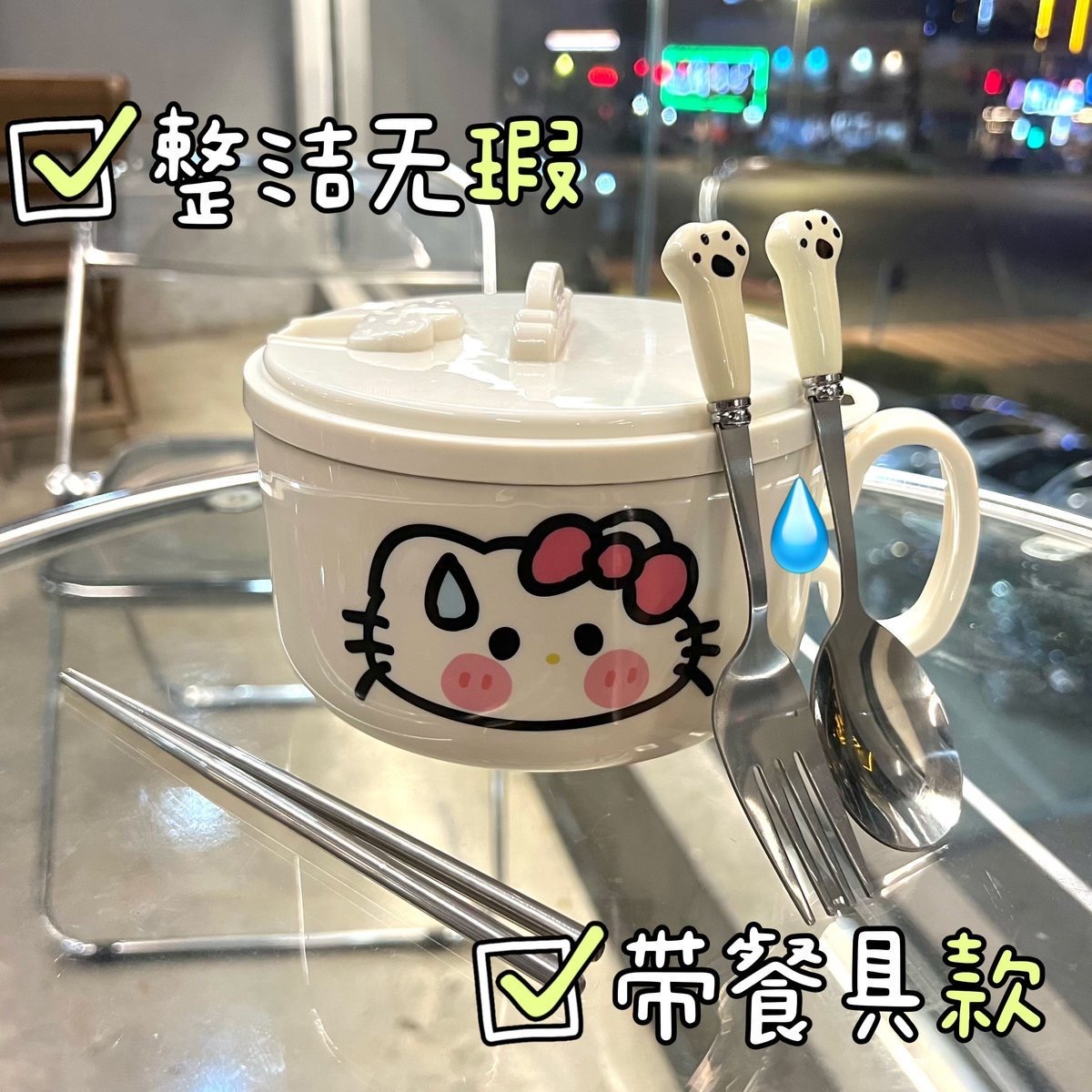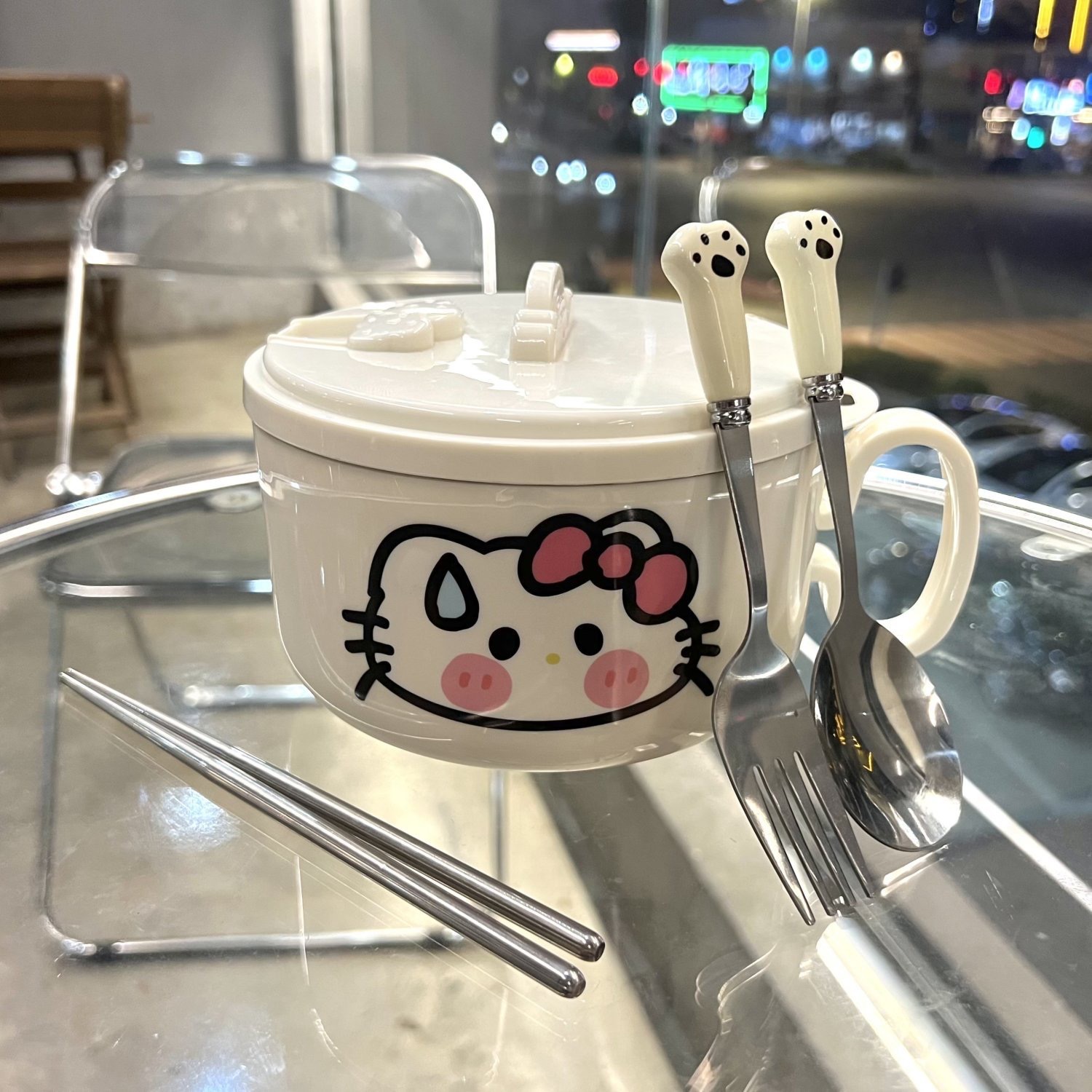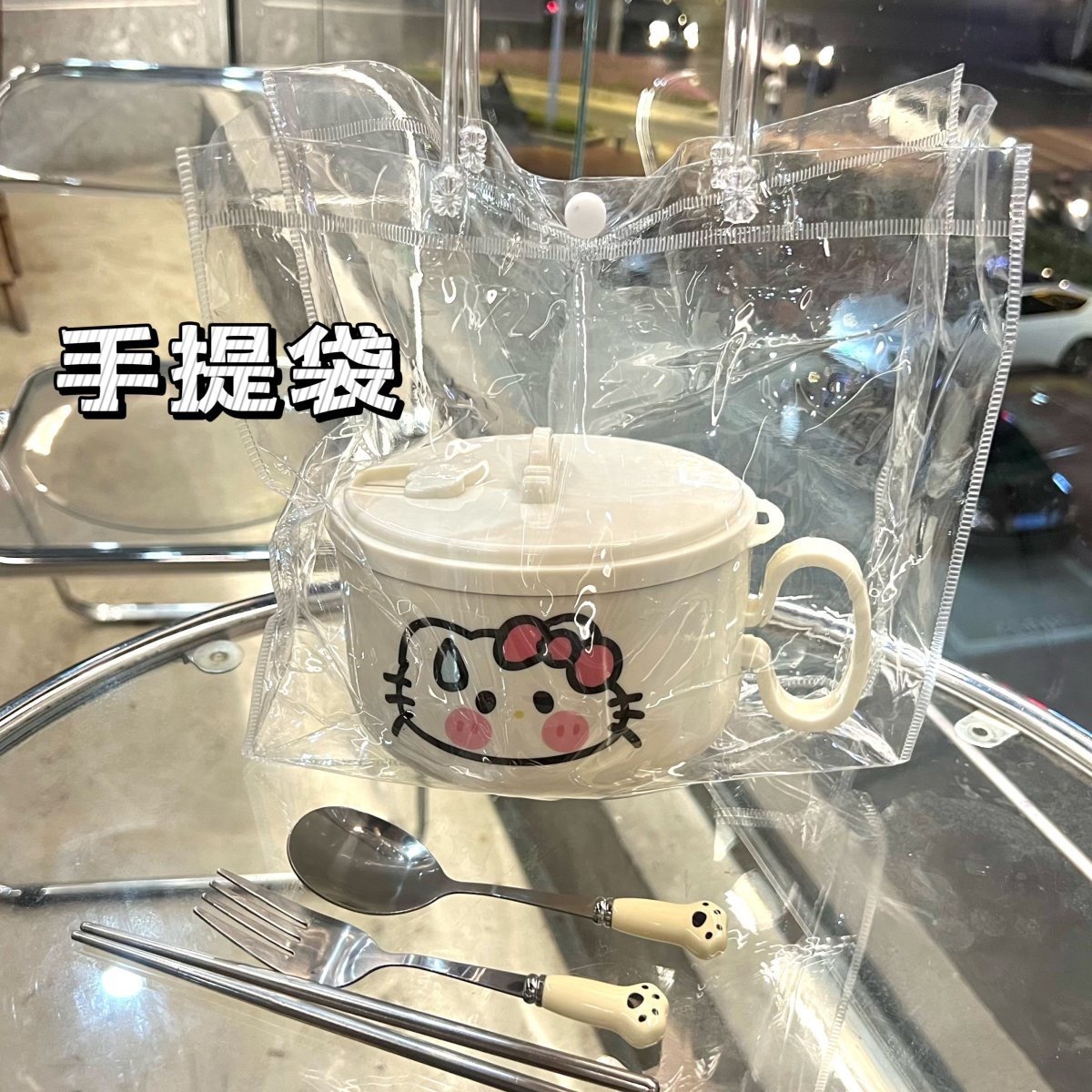• 국수 그릇 + 스티커 + 고양이 발톱 식기 + 핸드백