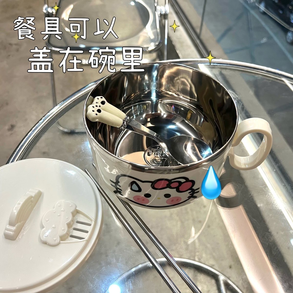 속삭임없는 고양이 인스턴트 국수 그릇 304 스테인레스 스틸 대용량 배수구 뚜껑이있는 귀여운 스타일 학생 여성 매점 도시락스토어 가기