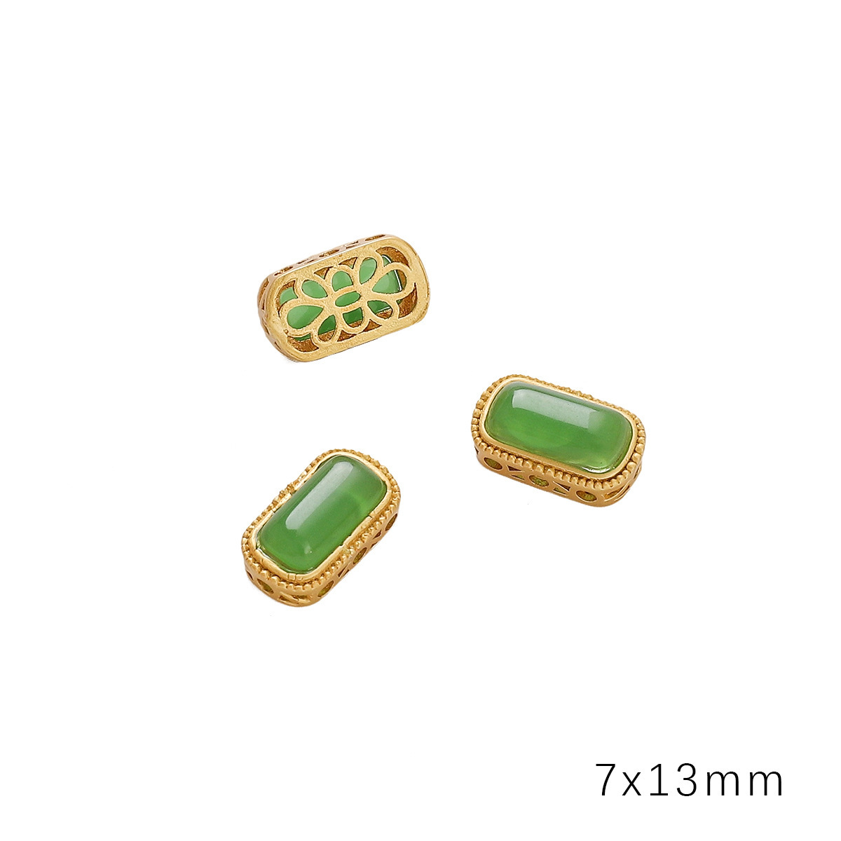 • 직사각형 7x13mm 조리개 약 1mm 골드 그린 유리