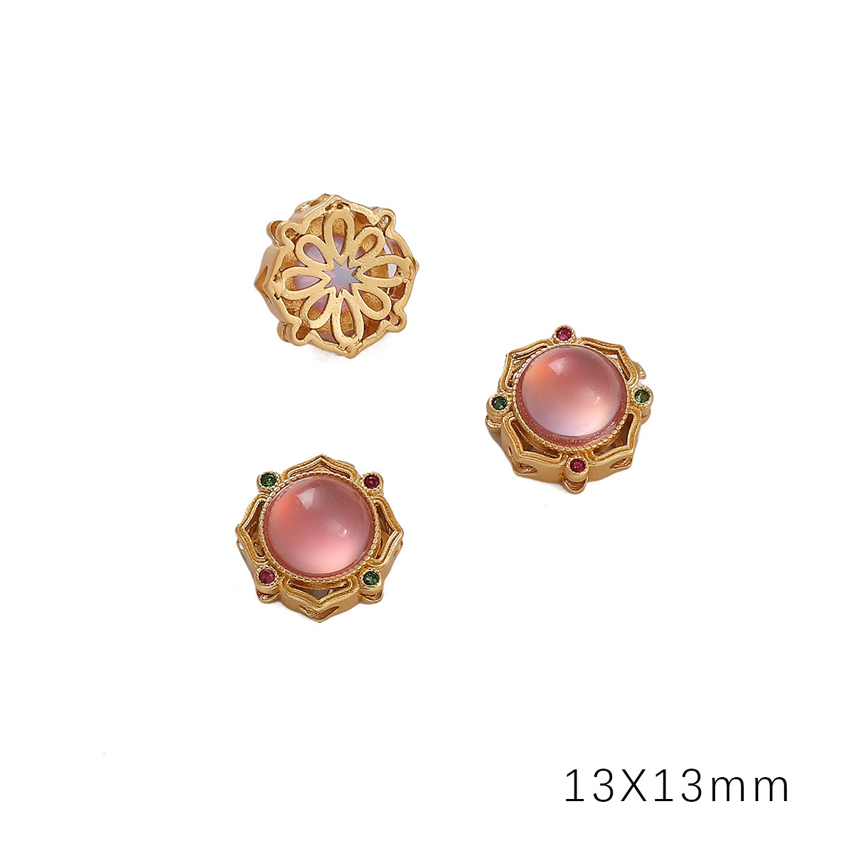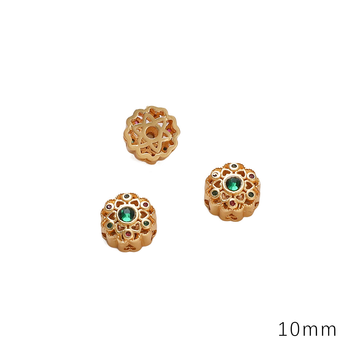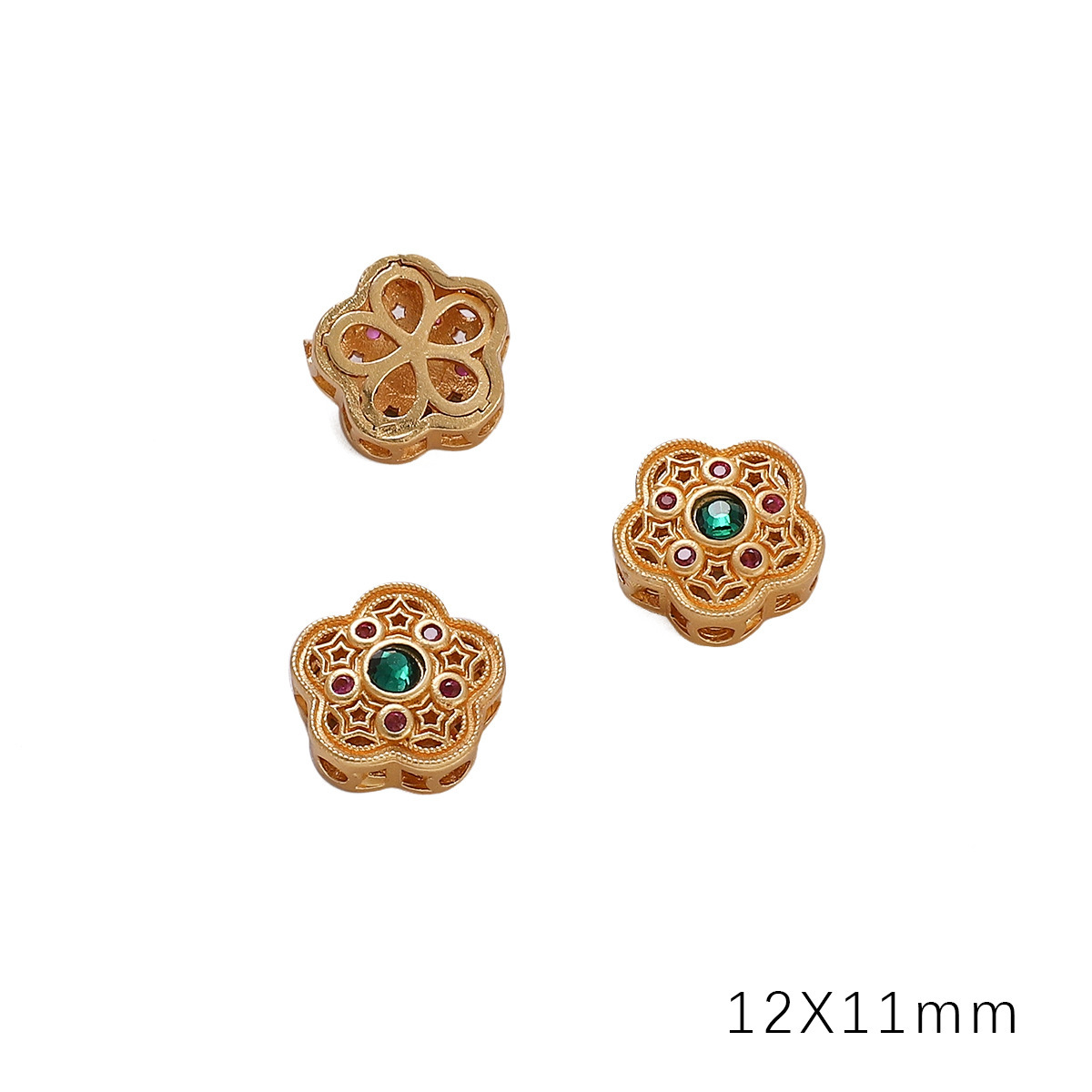 • 플라워 다이아몬드 13x13mm 조리개 약 2mm 골드 토너 유리 1/봉투