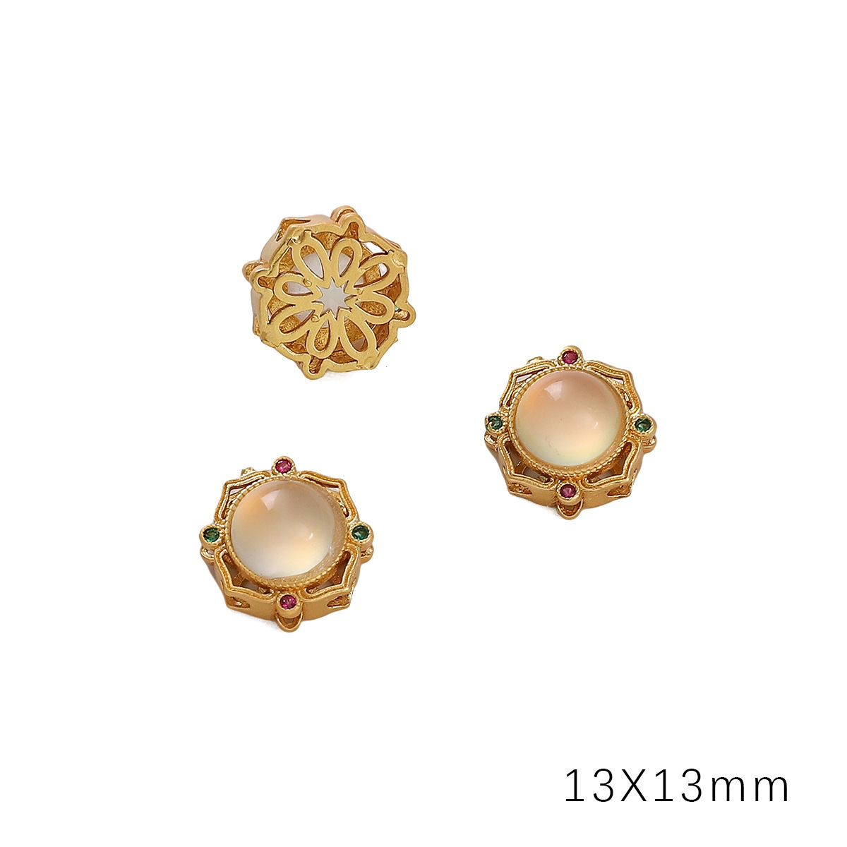 • 라운드 크로스 12x12mm 조리개 약 1.5mm 골드 화이트 유리 1/가방