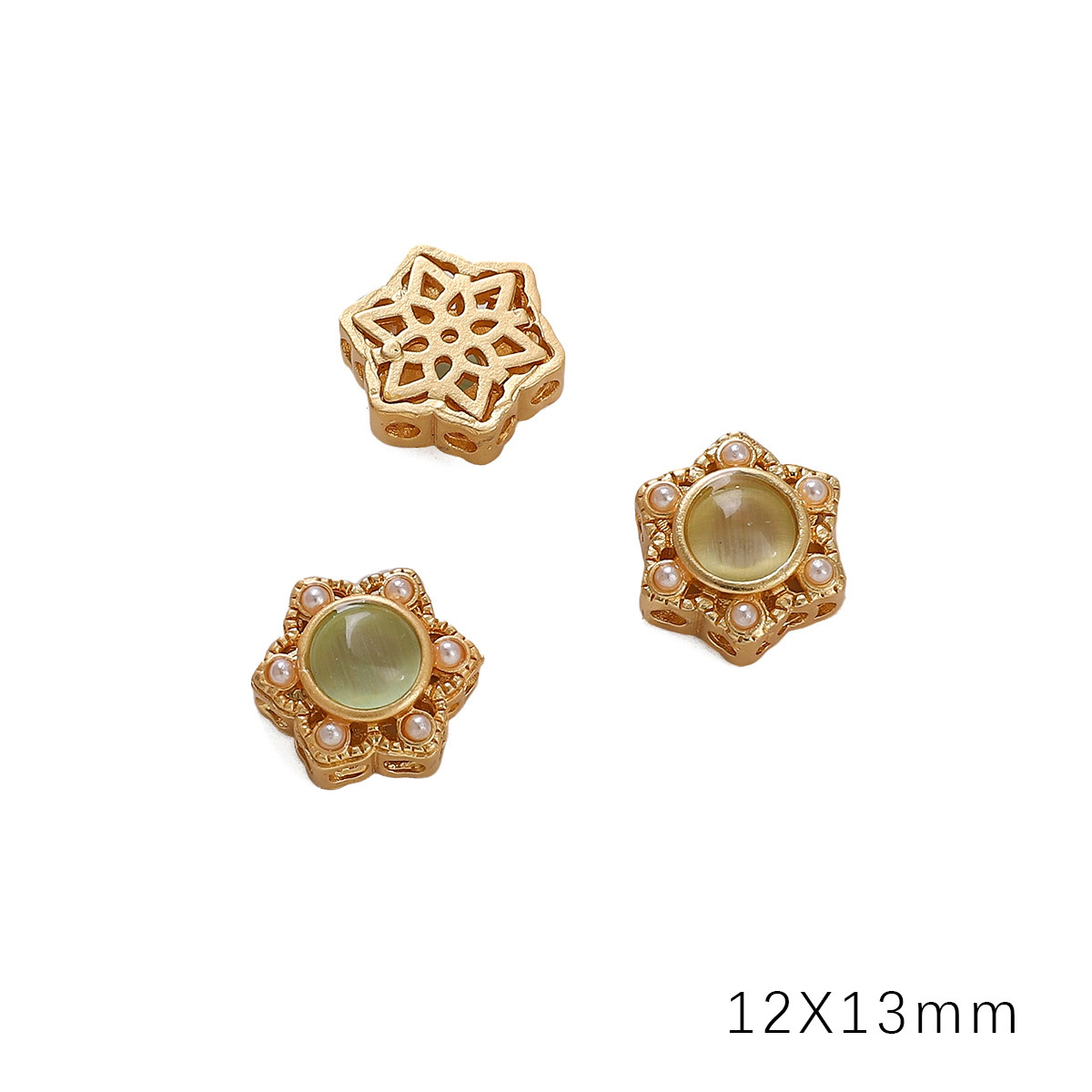 • 육각 꽃 12x13mm 조리개 약 1.5mm 골드 라이트 그린 유리 1/가방