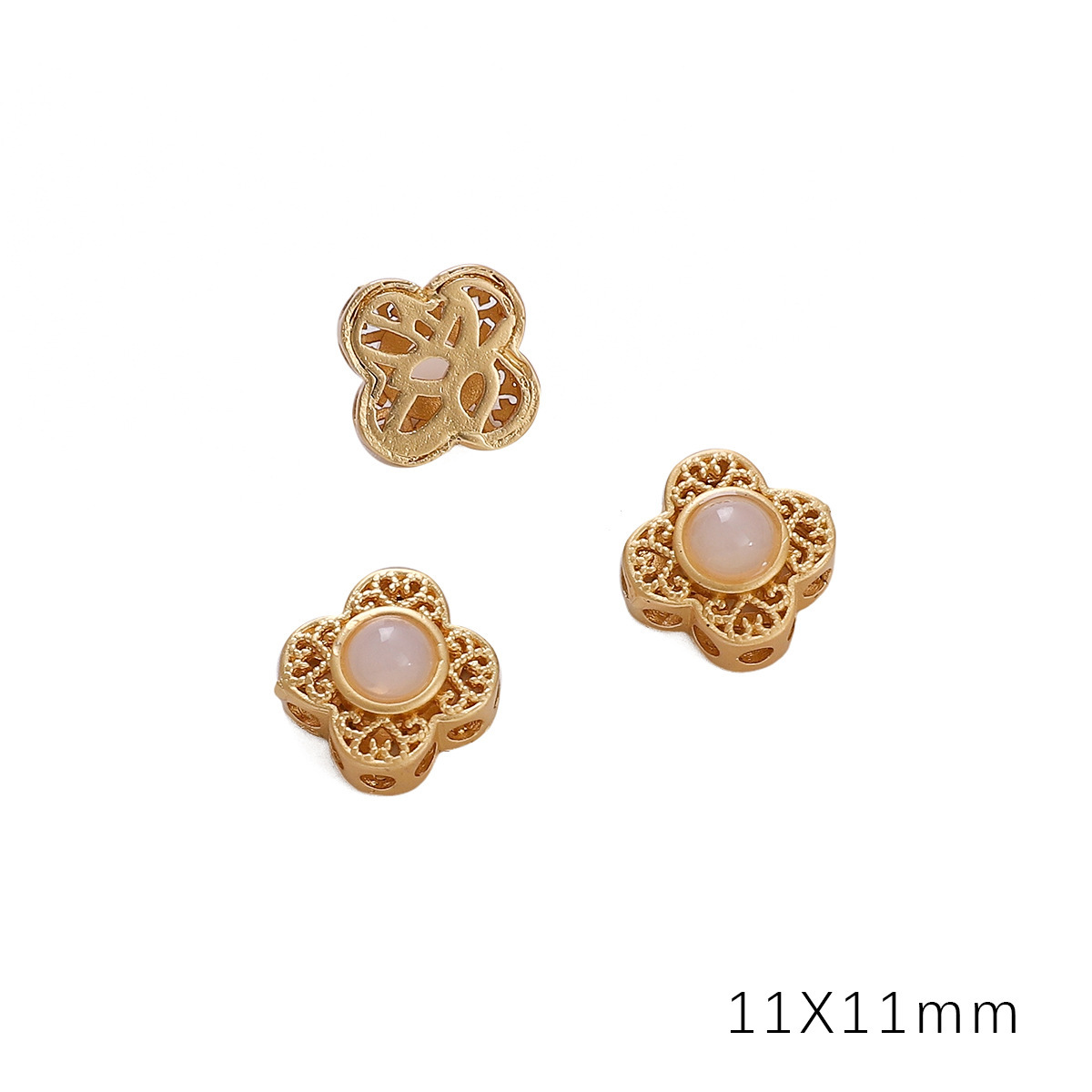 • 플라워 다이아몬드 13x13mm 조리개 약 2mm 골든 라이스 화이트 글라스 1/봉투