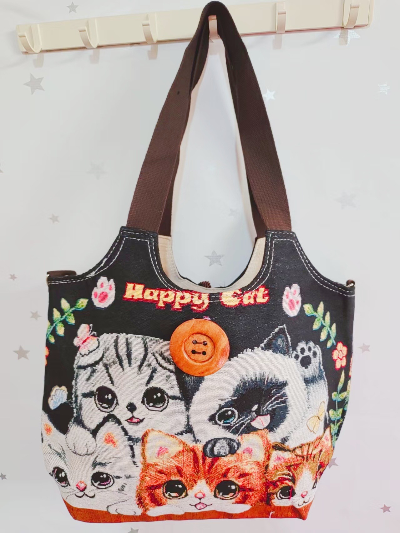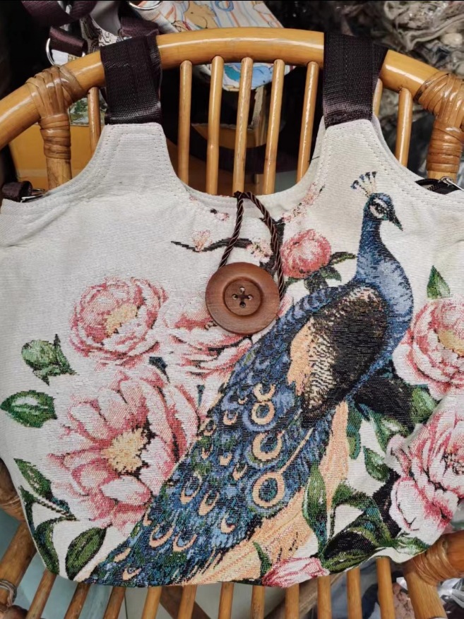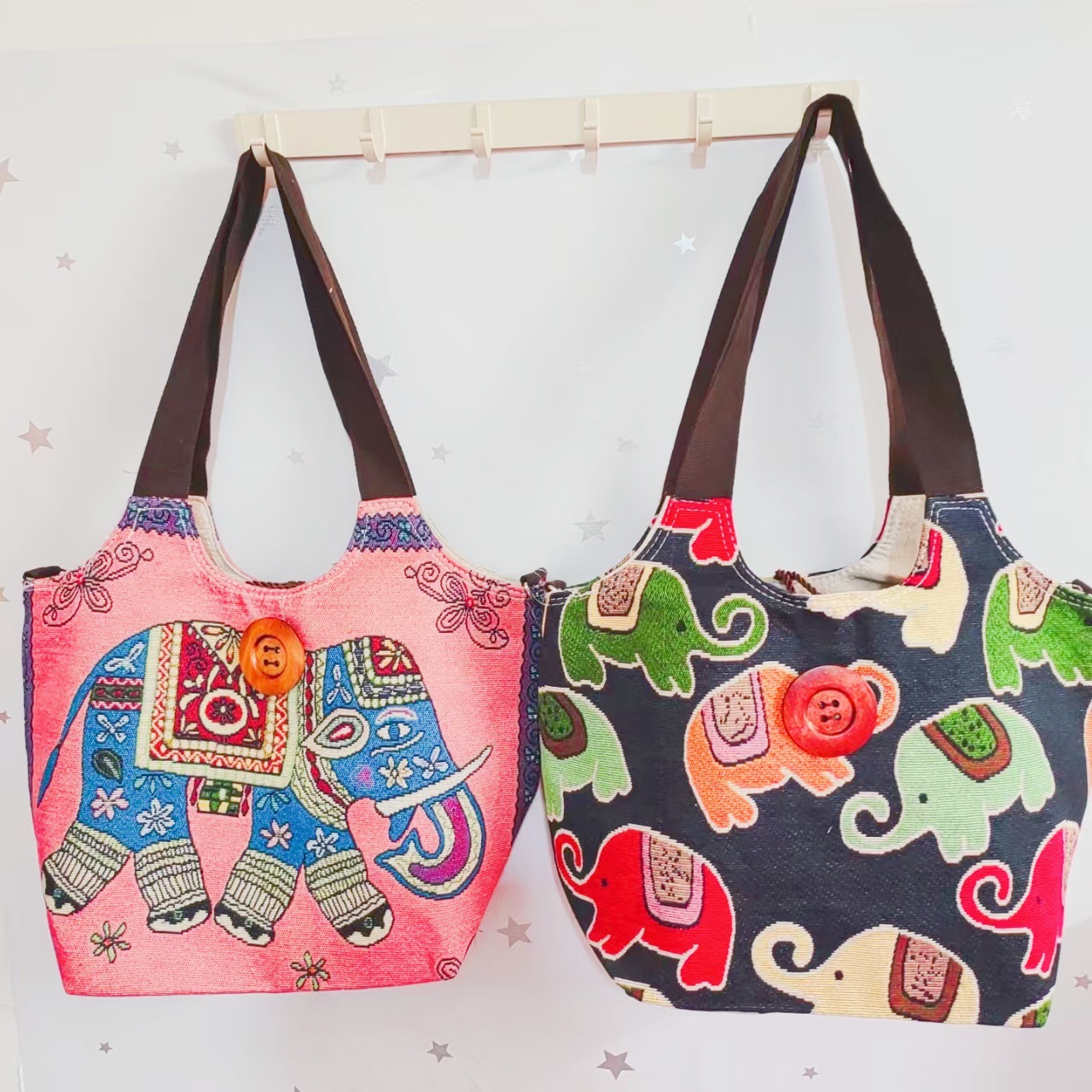 에스닉 스타일 대용량 캔버스 가방 자수 코끼리 운남 여행 토트 숄더백 크로스 바디 백 다이 버튼 백스토어 가기