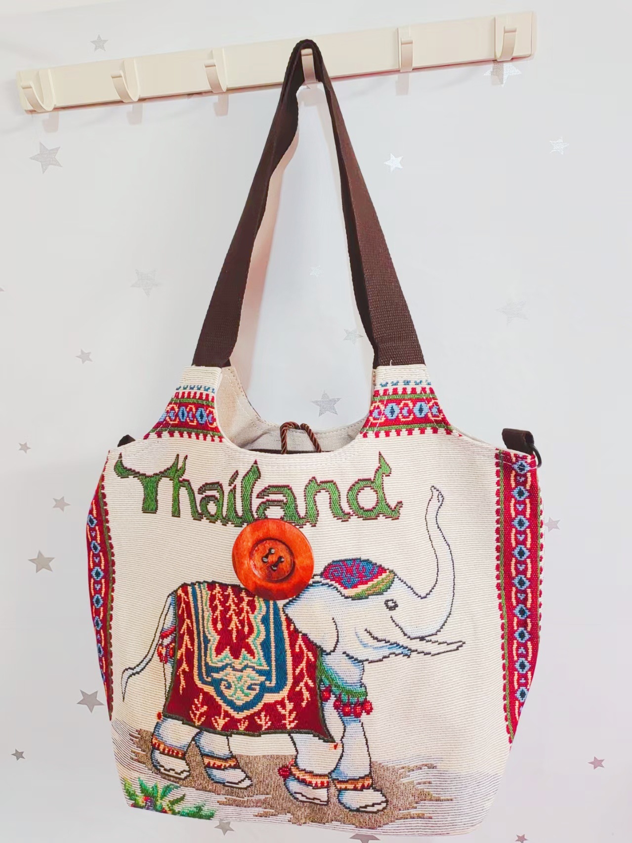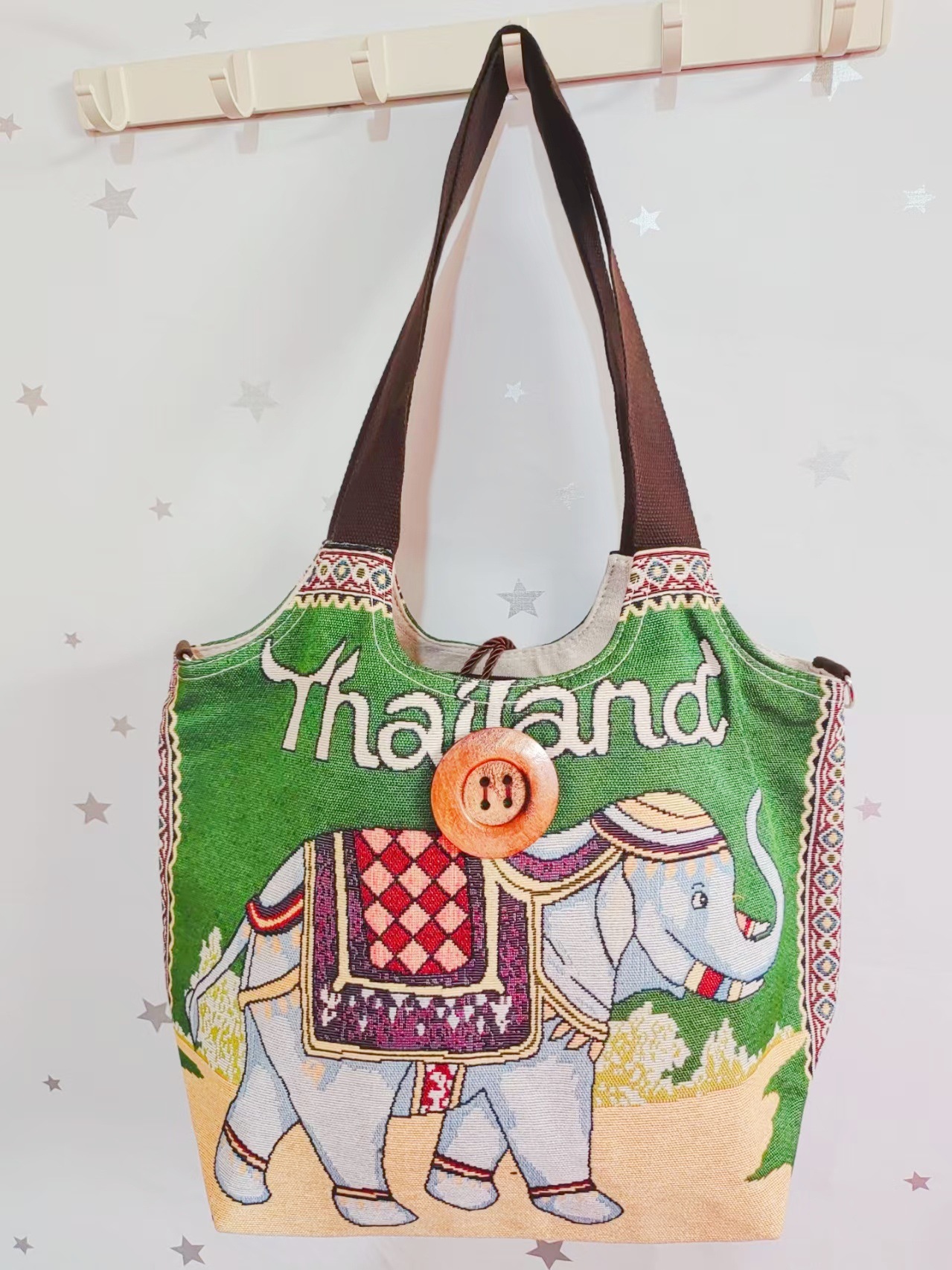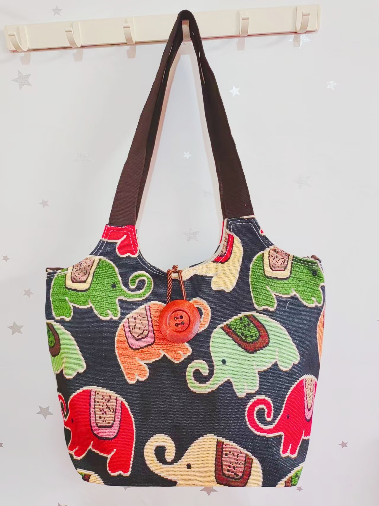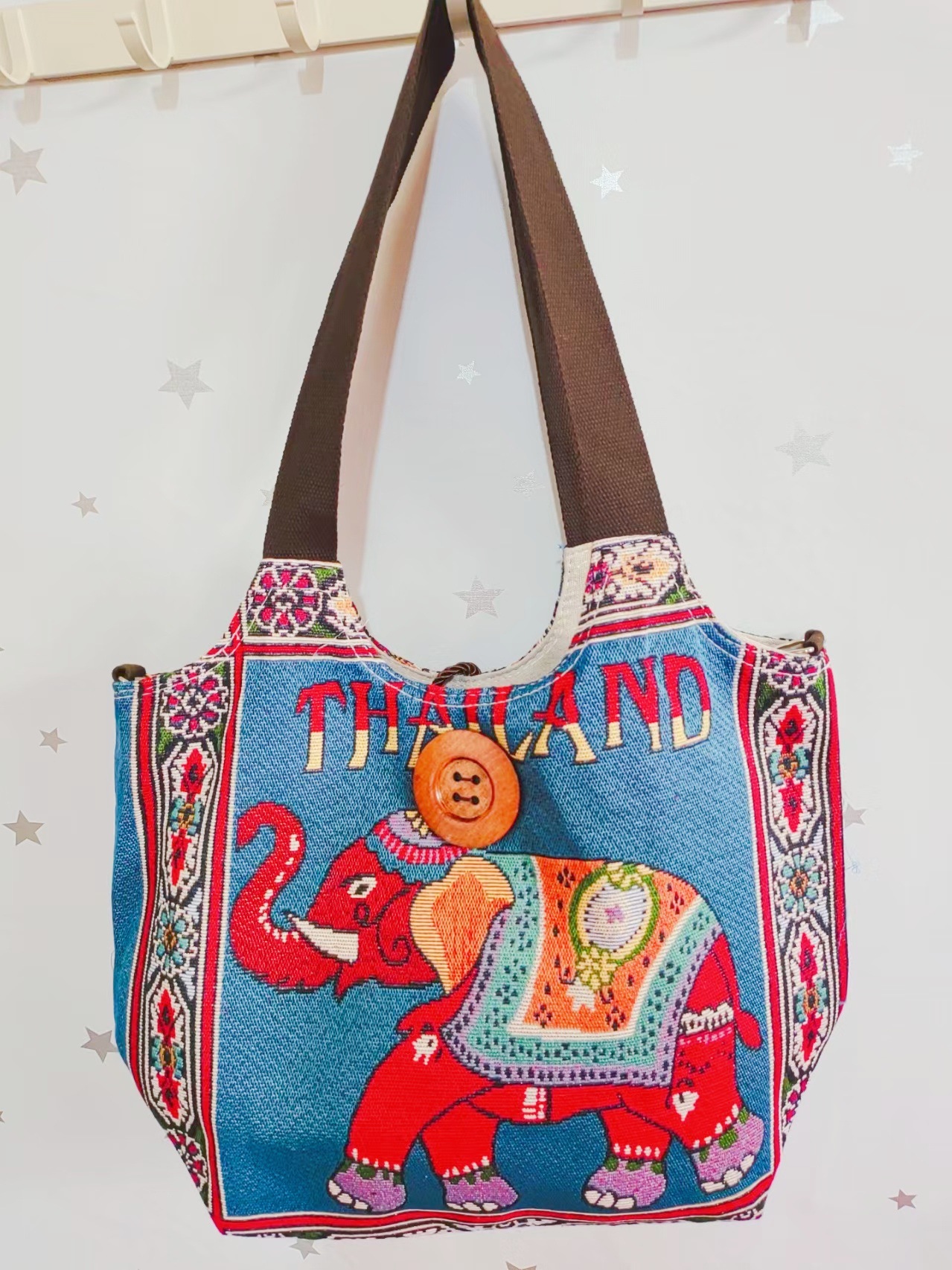 에스닉 스타일 대용량 캔버스 가방 자수 코끼리 운남 여행 토트 숄더백 크로스 바디 백 다이 버튼 백