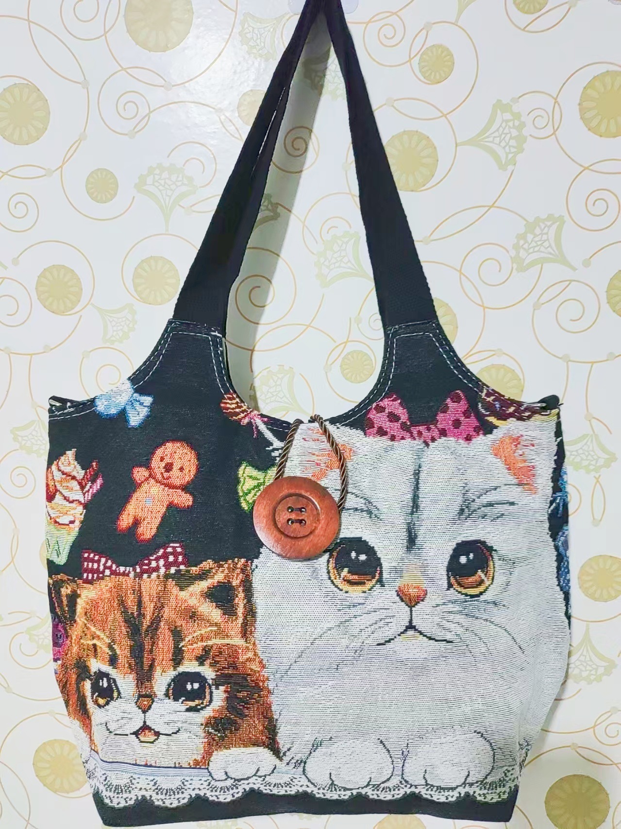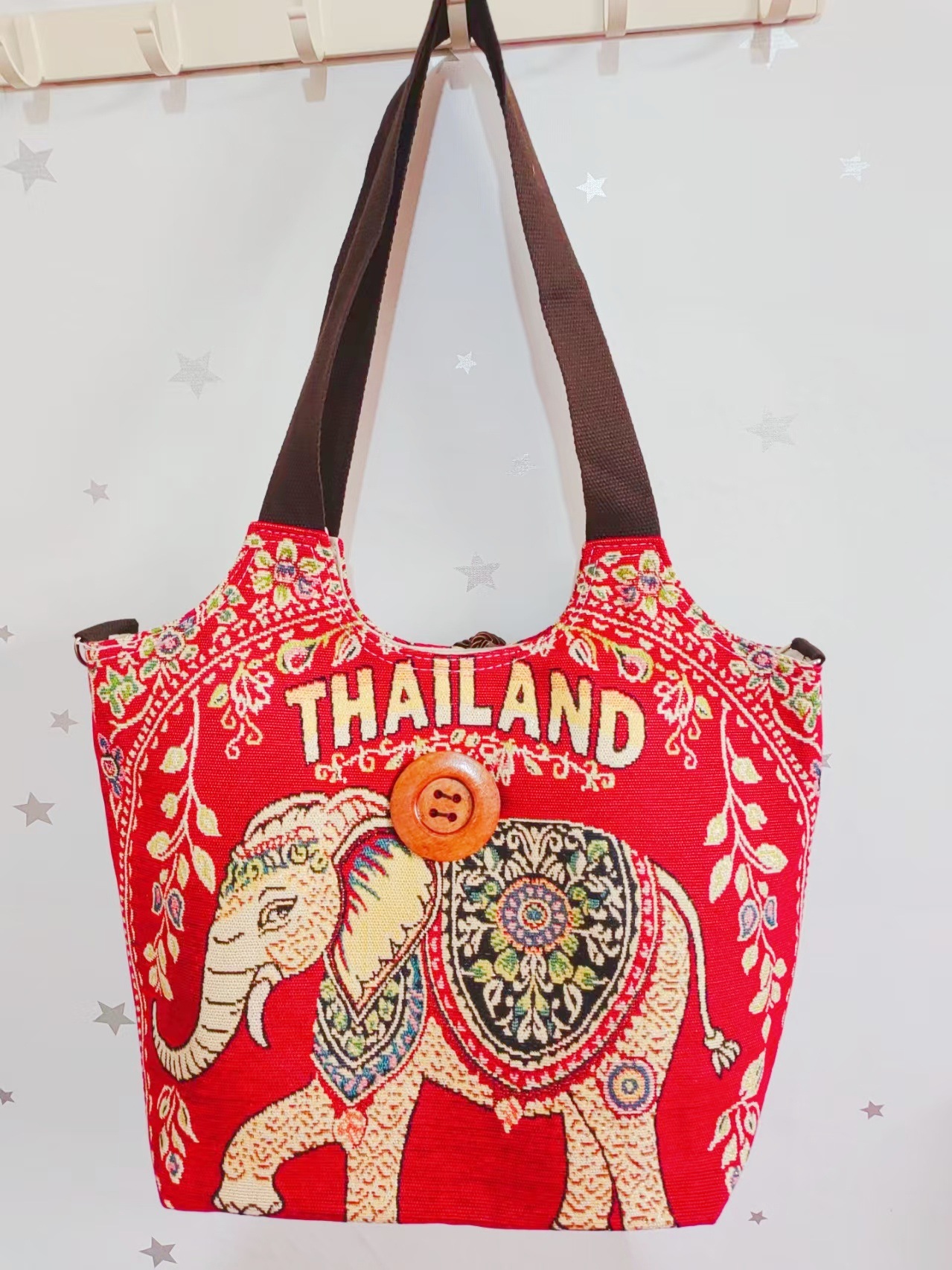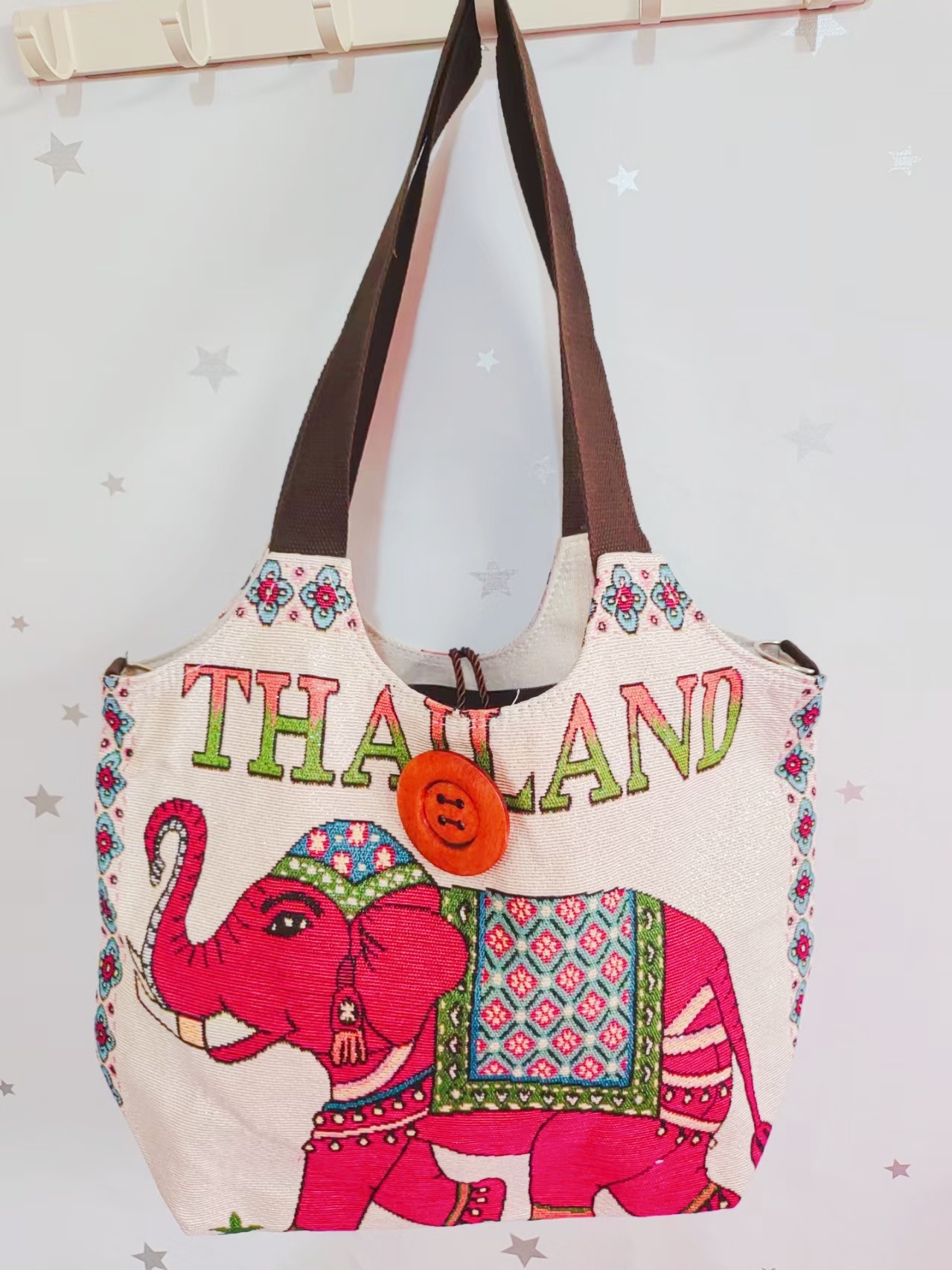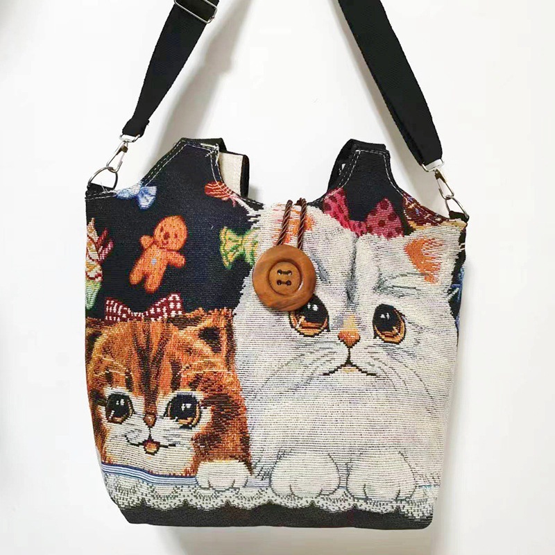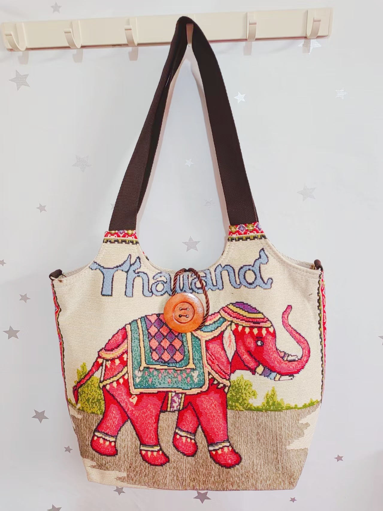 에스닉 스타일 대용량 캔버스 가방 자수 코끼리 운남 여행 토트 숄더백 크로스 바디 백 다이 버튼 백