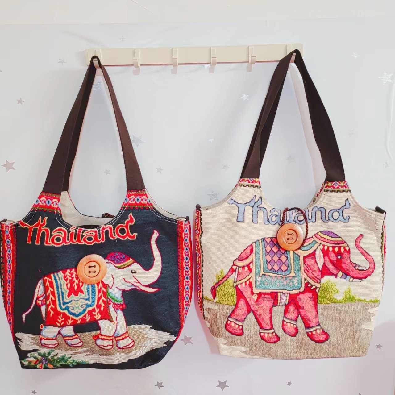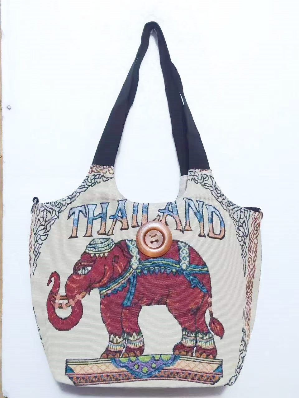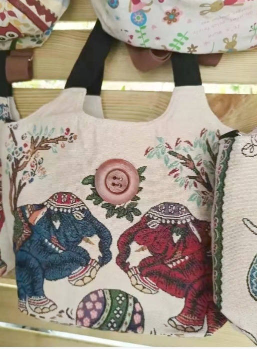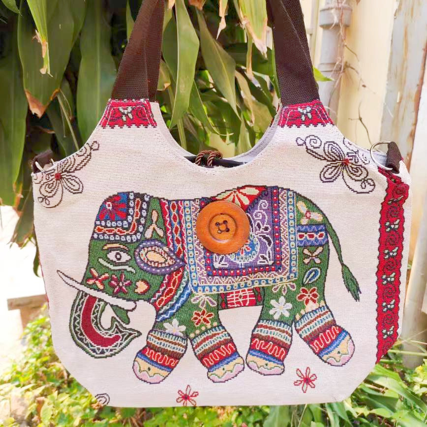 民族风大容量帆布包刺绣大象云南旅游托特单肩包斜挎包傣族扣子包