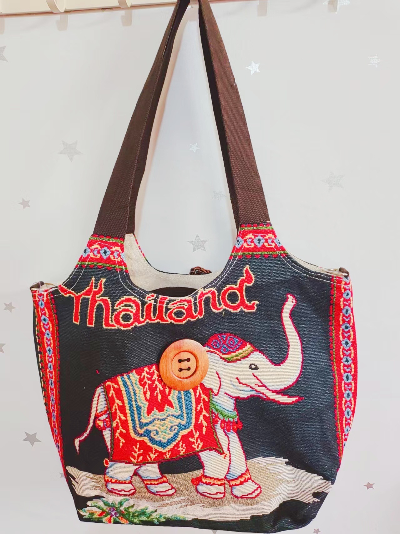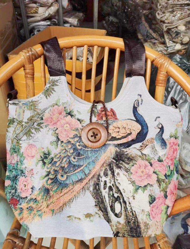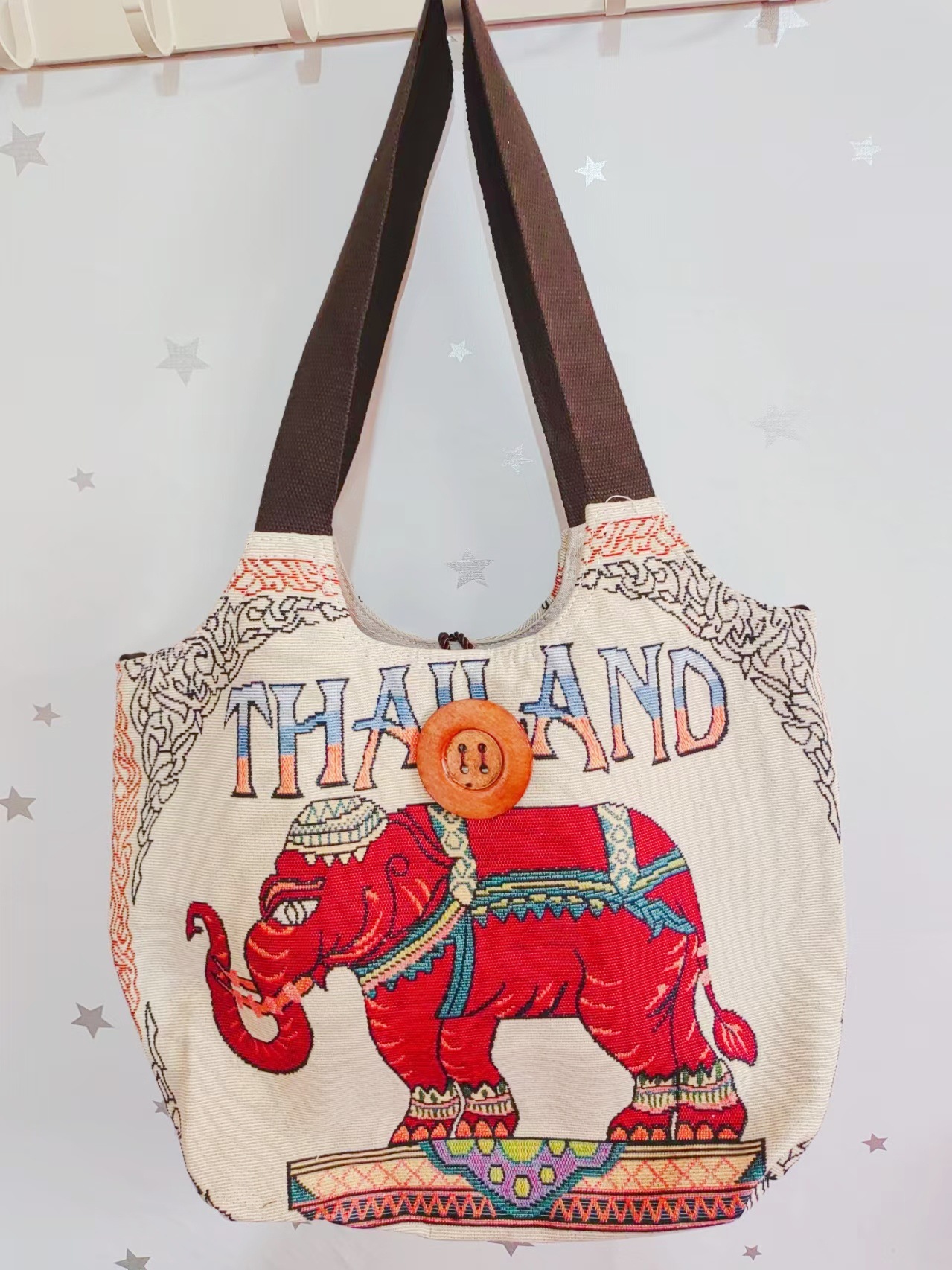 民族风大容量帆布包刺绣大象云南旅游托特单肩包斜挎包傣族扣子包