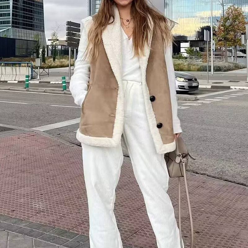 2023 가을과 겨울 여성의 새로운 국경 간 대외 무역 도매 유럽과 미국의 모조 사슴 가죽 벨벳 조끼 따뜻한 조끼 코트