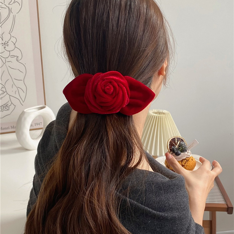 2023 가을과 겨울 새로운 프랑스 스타일 빈티지 벨벳 독특한 장미 활 머리핀 모든 매치 꽃 여성 봄 클립