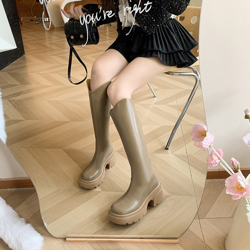 마틴 부츠 여성용 가을과 겨울 새로운 두꺼운 밑창 라이더 부츠 키 크고 슬림 한 높이 작은 부츠 롱 부츠 하이힐스토어 가기