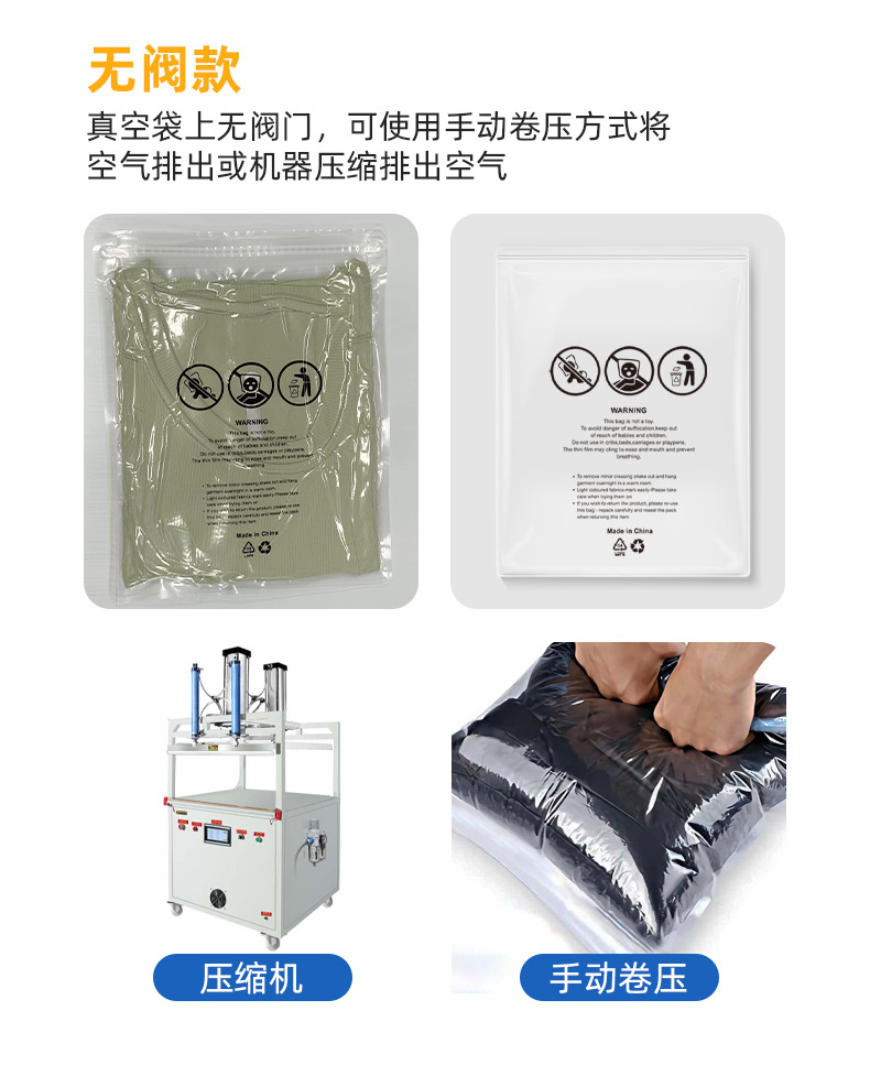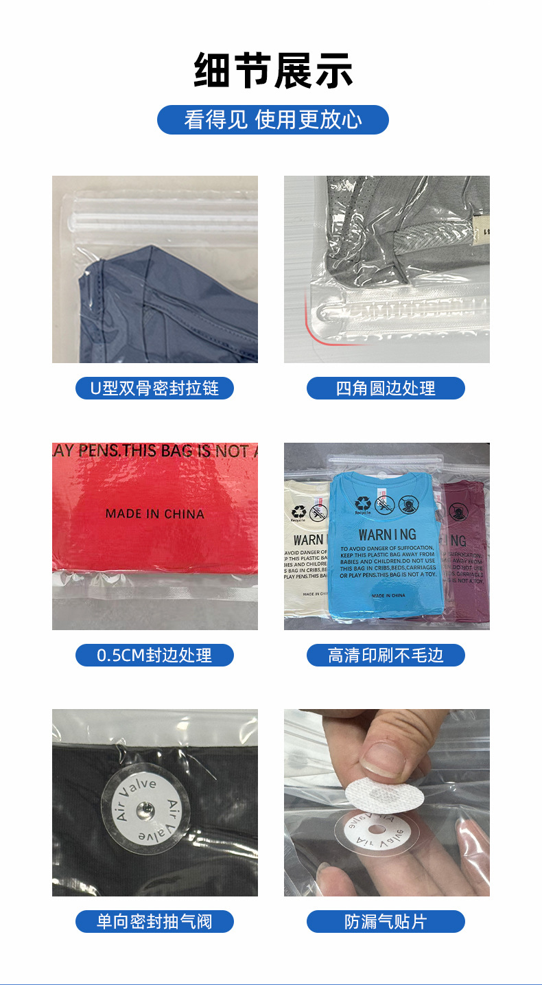 100개부터 맞춤형 아마존 국경 경고 의류 지퍼 가방 양말 진공 가방 아동복 압축 가방스토어 가기