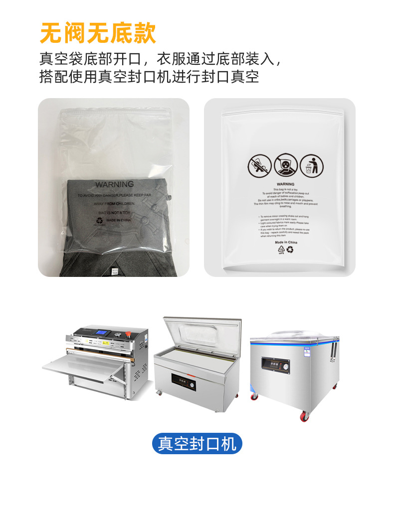 100개부터 맞춤형 아마존 국경 경고 의류 지퍼 가방 양말 진공 가방 아동복 압축 가방