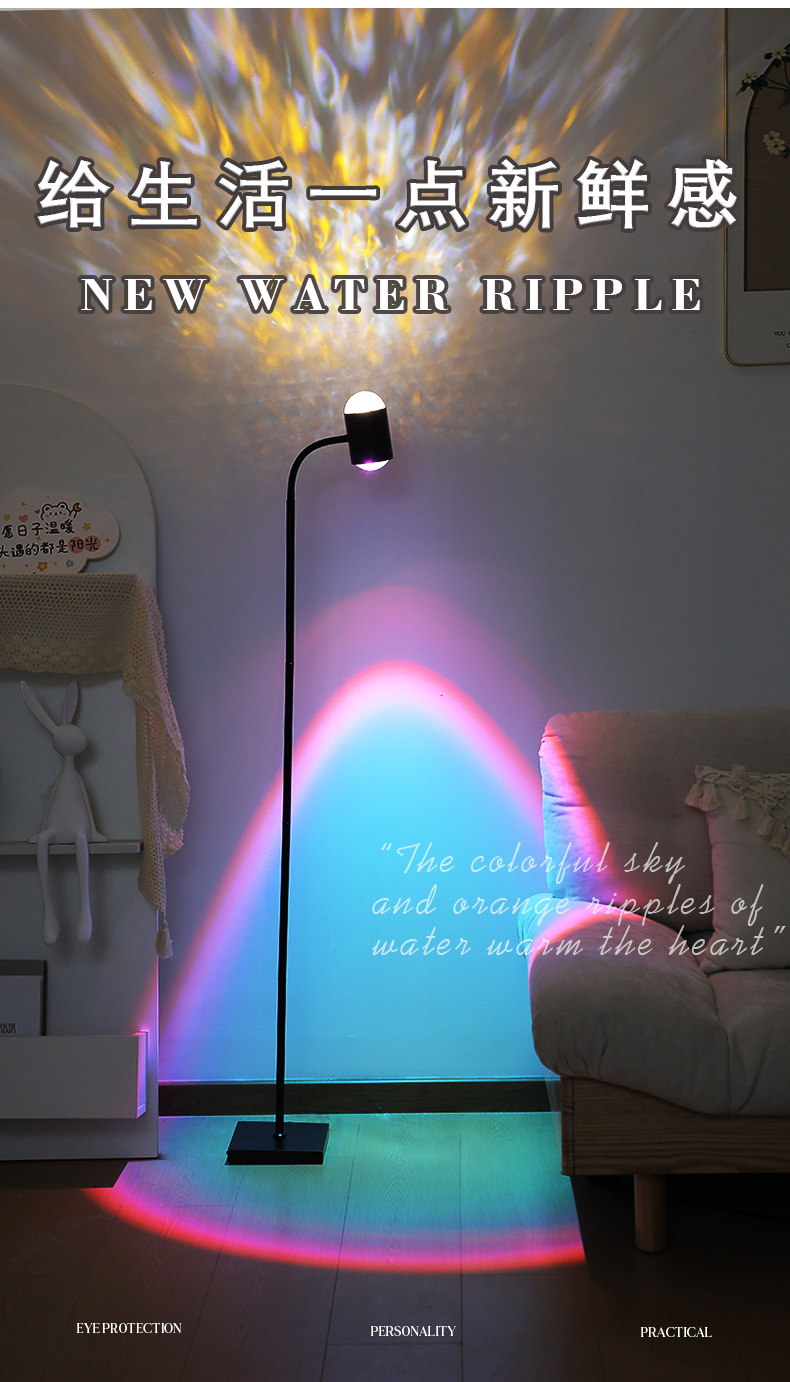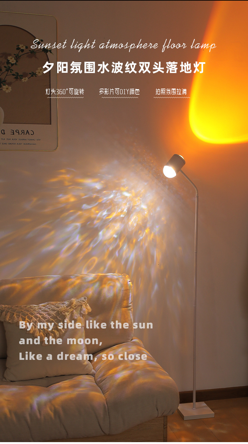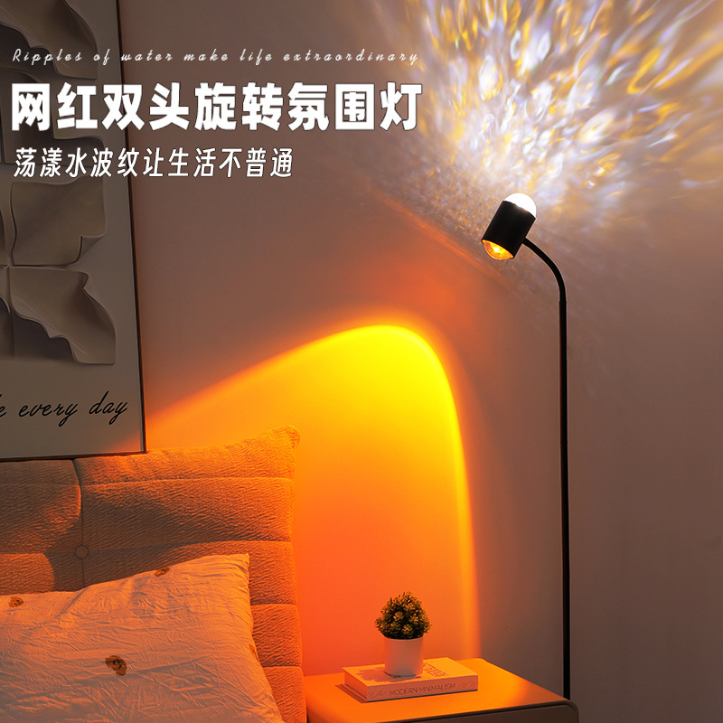 물 파문 분위기 램프 그물 빨강 쌍두 일몰 램프 플로어 램프 거실 라이브 방송 배경 일몰 일몰 테이블 램프 물 패턴