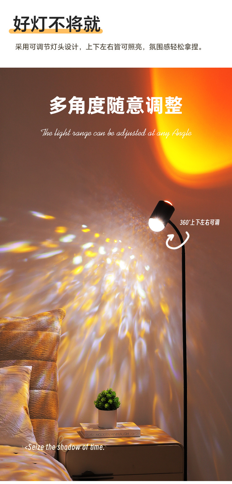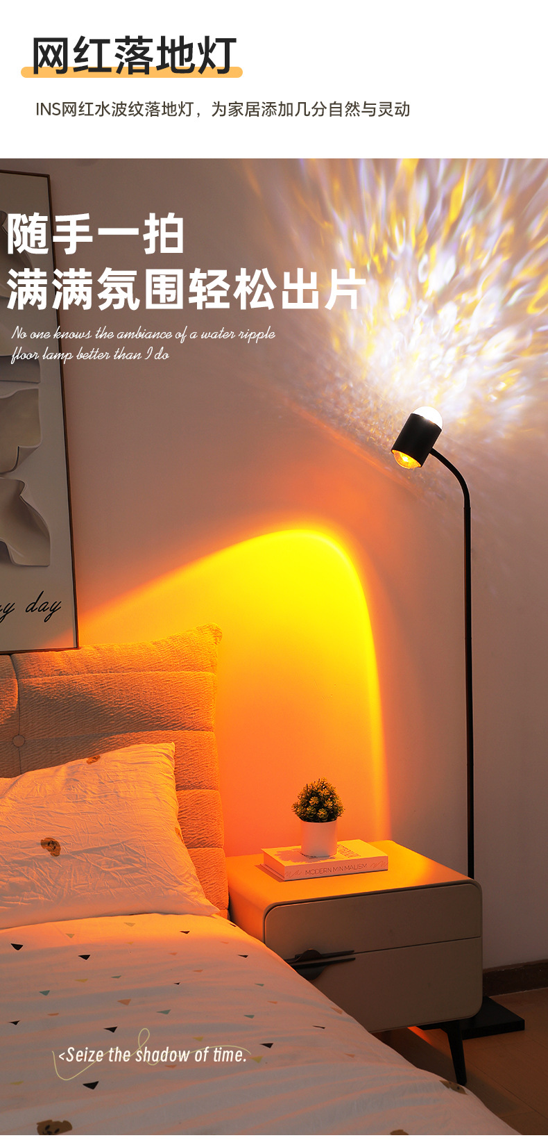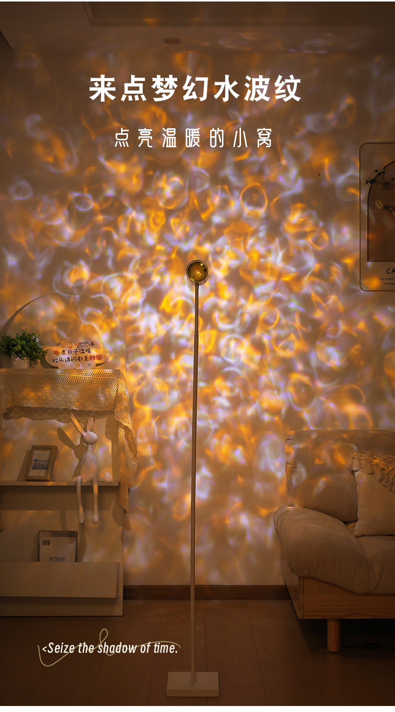 물 파문 분위기 램프 그물 빨강 쌍두 일몰 램프 플로어 램프 거실 라이브 방송 배경 일몰 일몰 테이블 램프 물 패턴