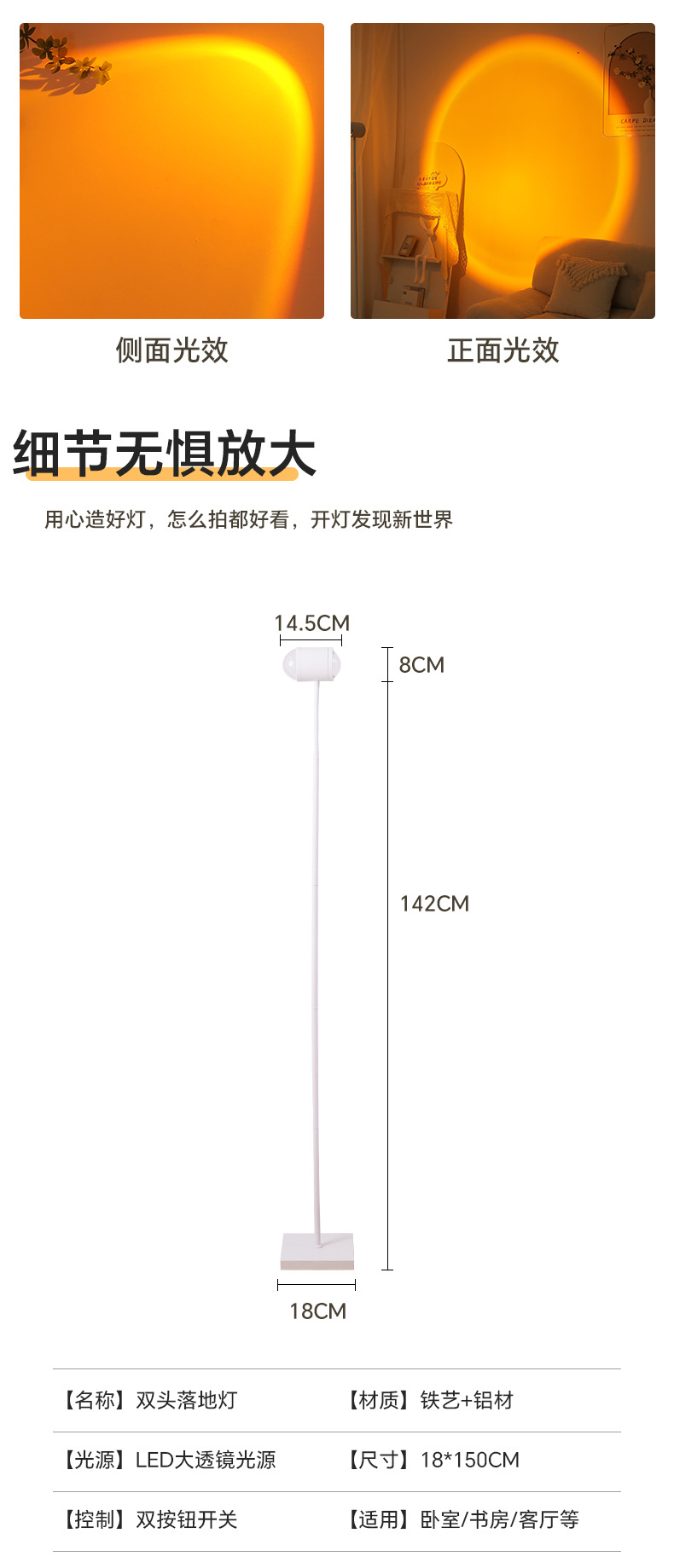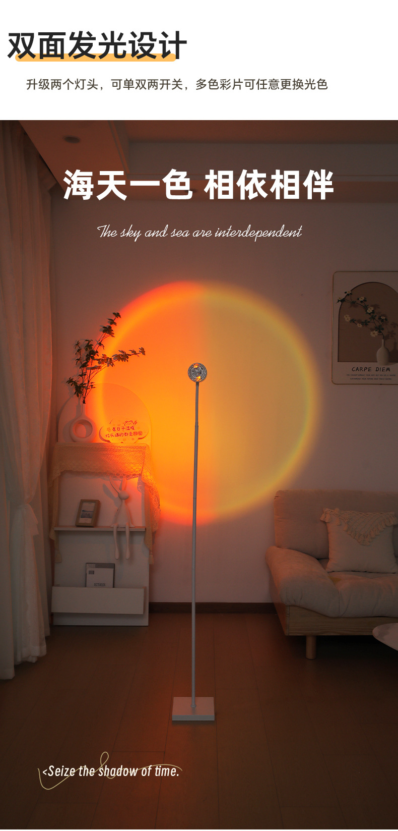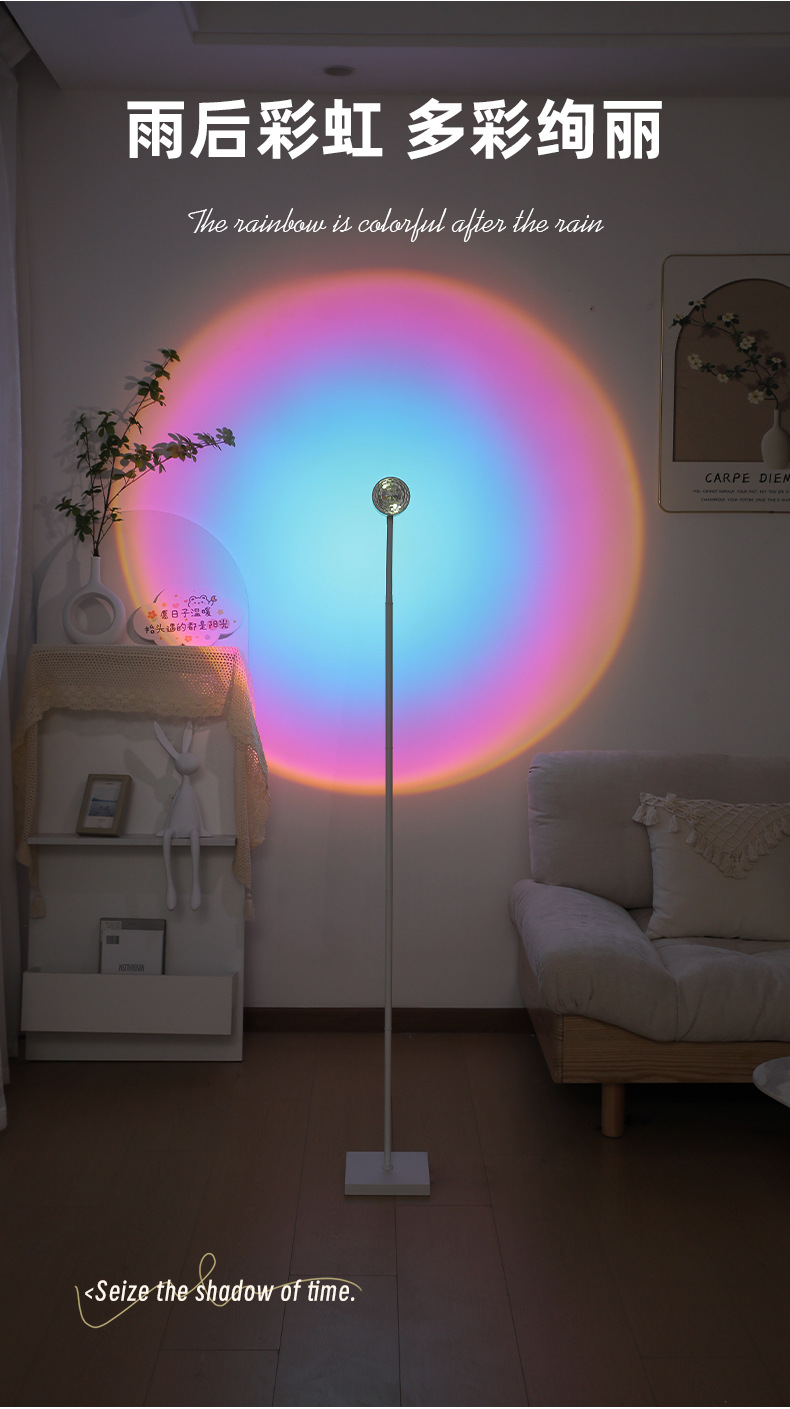 • 다이렉트 플러그 220V 화이트 폴 [플로어 램프] 선셋 라이트 + 5 컬러 카드