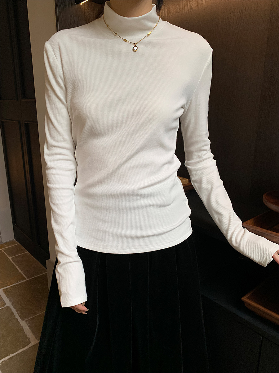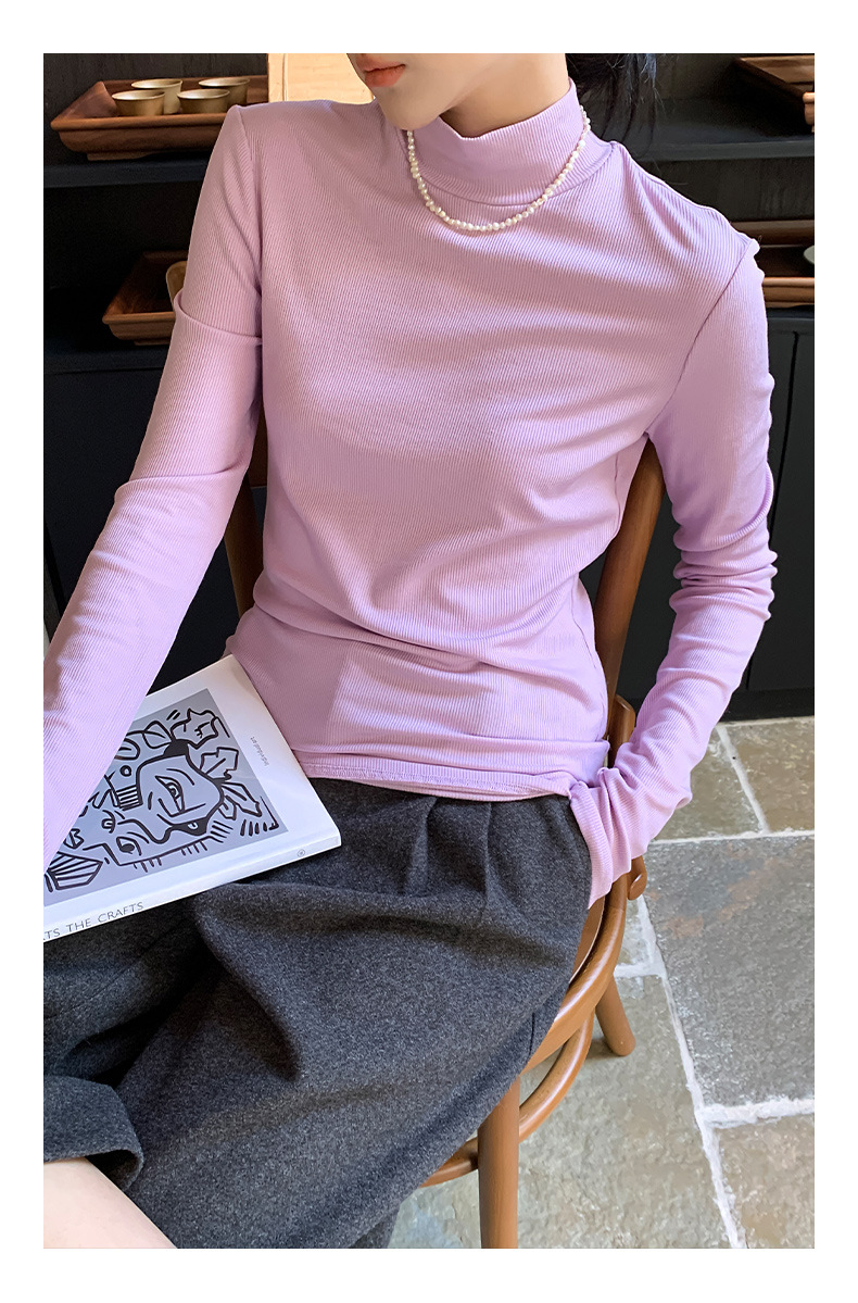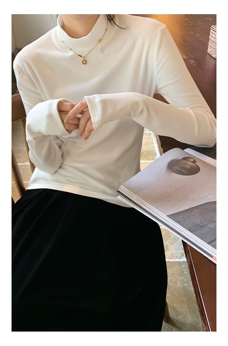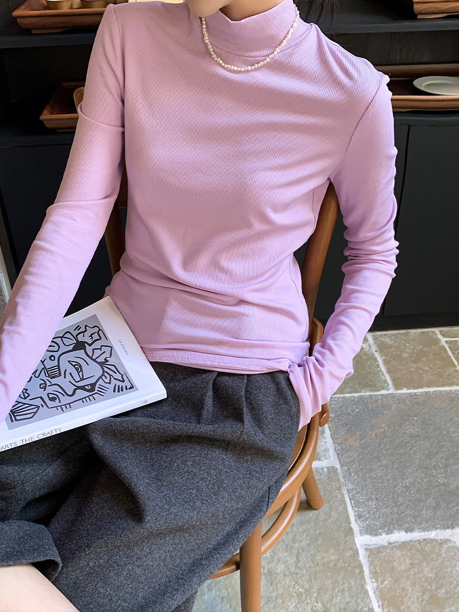 공식 7 색 기모 올 매치 세미 하이 칼라 바닥 스웨터 T 여성용 피트 패턴 접힌 탑을 입고 이순신 셔츠