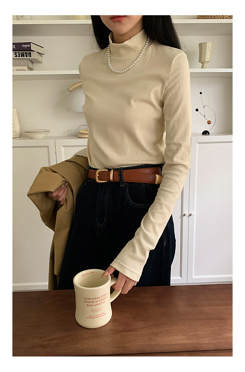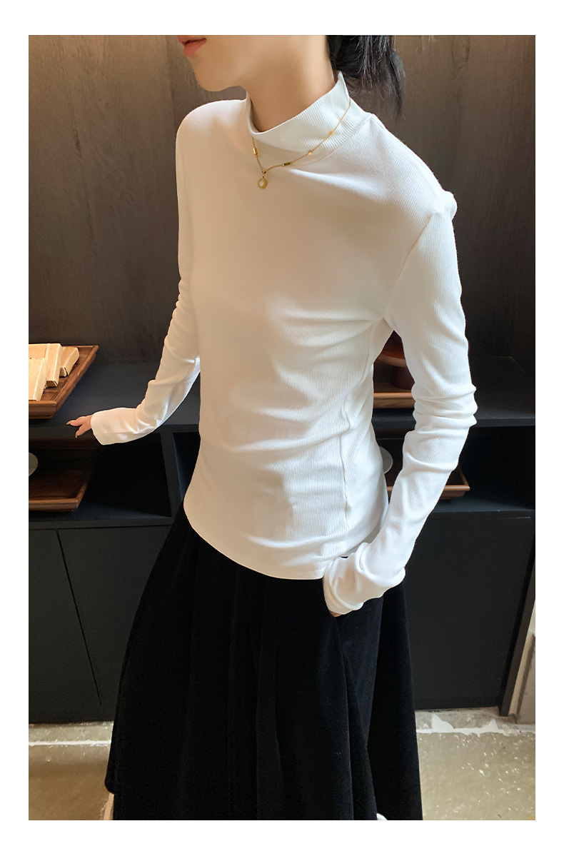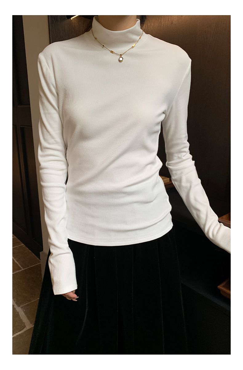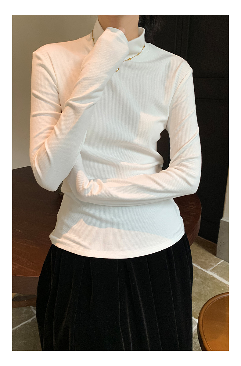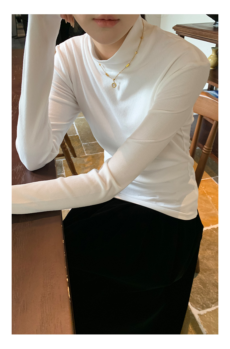 공식 7 색 기모 올 매치 세미 하이 칼라 바닥 스웨터 T 여성용 피트 패턴 접힌 탑을 입고 이순신 셔츠