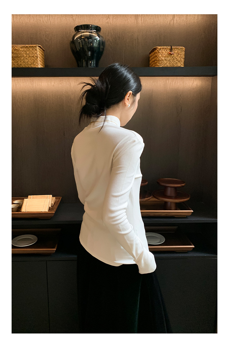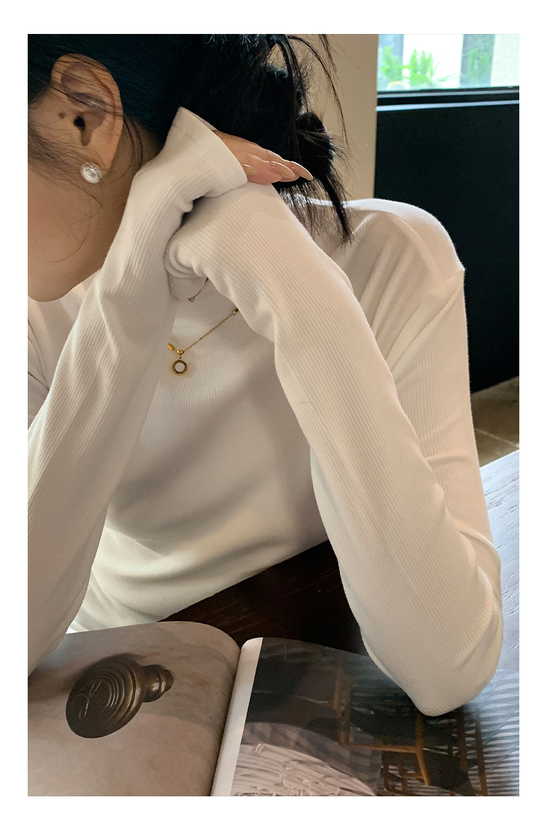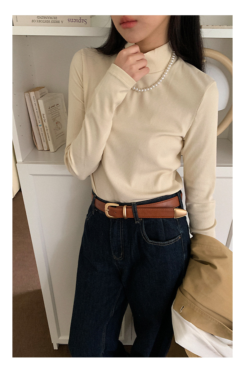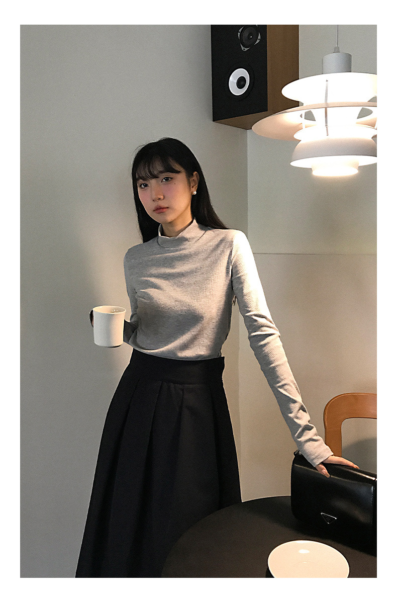 공식 7 색 기모 올 매치 세미 하이 칼라 바닥 스웨터 T 여성용 피트 패턴 접힌 탑을 입고 이순신 셔츠