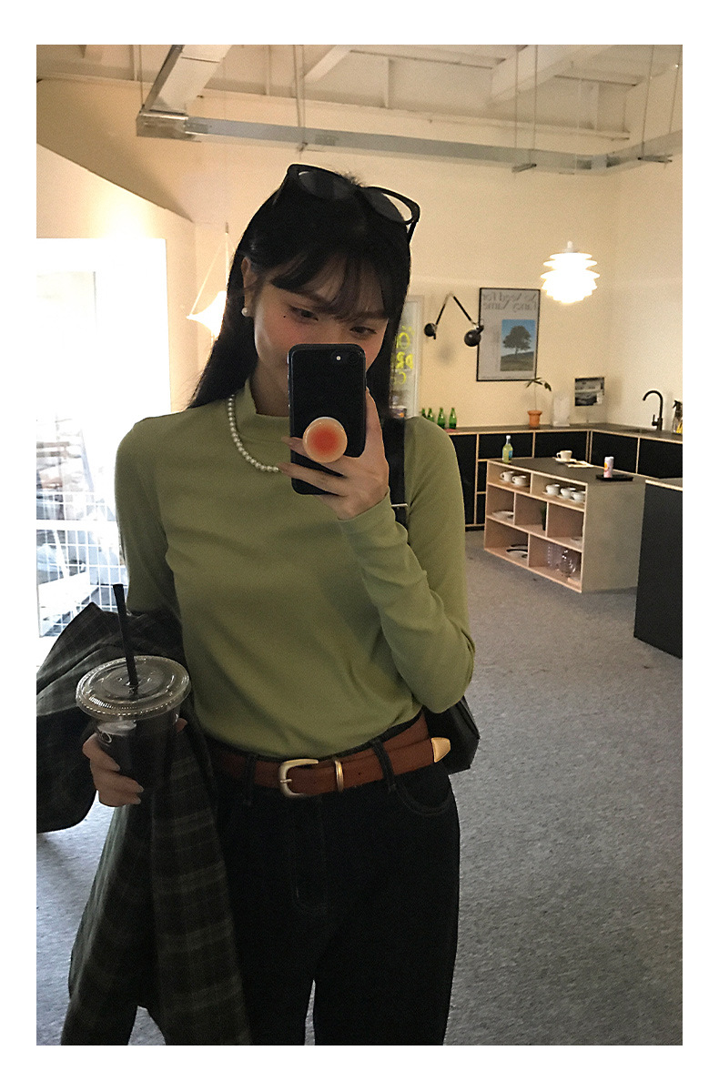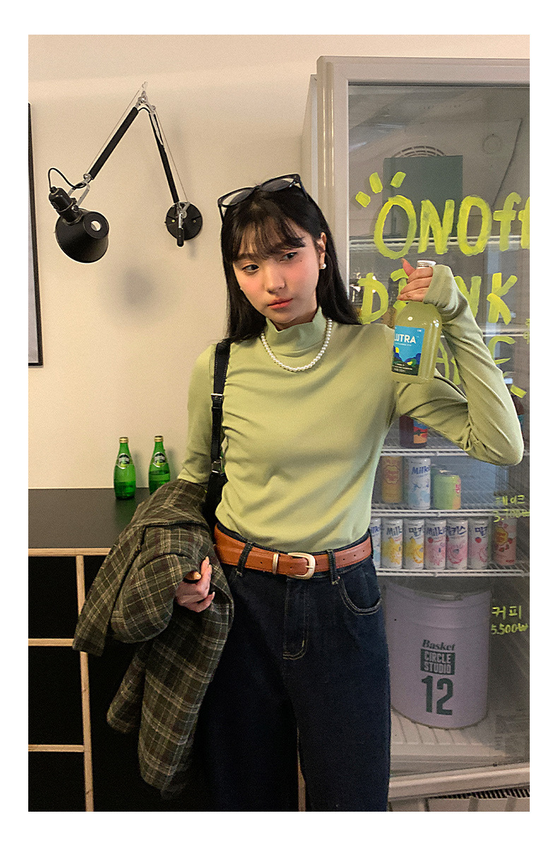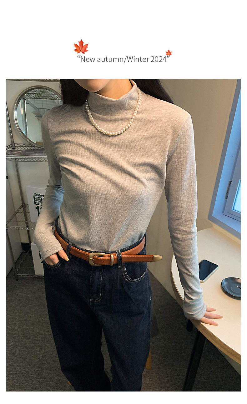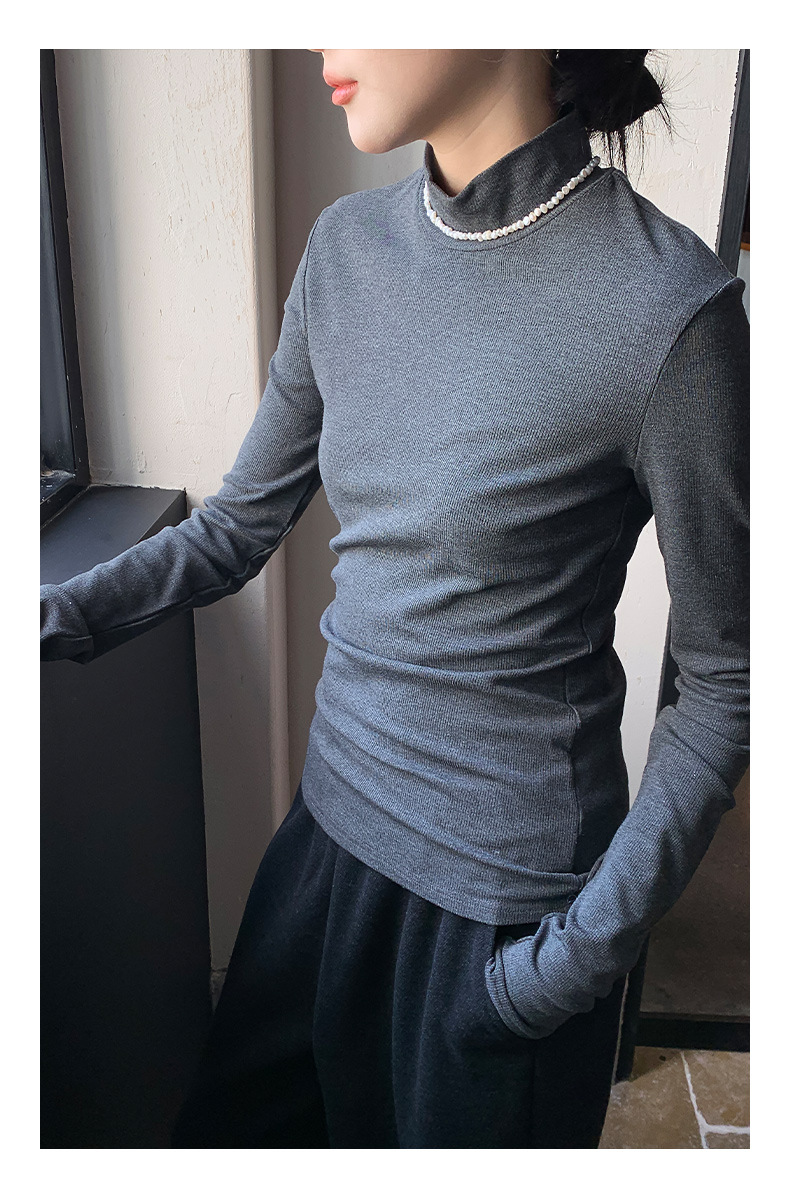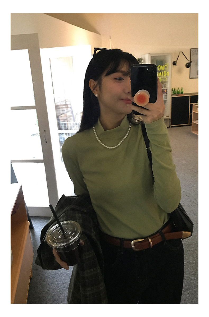 공식 7 색 기모 올 매치 세미 하이 칼라 바닥 스웨터 T 여성용 피트 패턴 접힌 탑을 입고 이순신 셔츠스토어 가기
